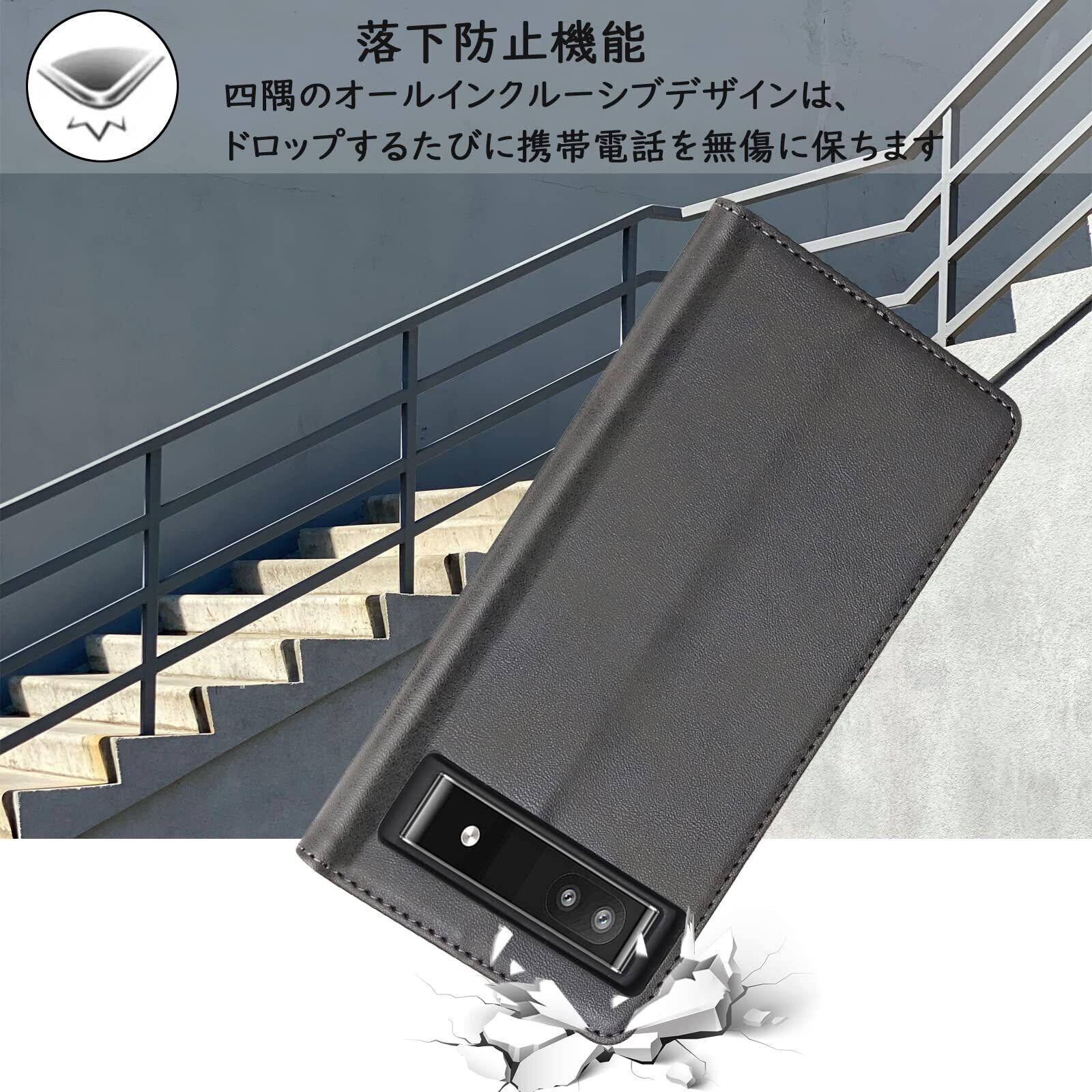 【Hamany】 Google pixel 6a ケース 手帳型 カード収納 耐衝撃 耐久性 耐摩擦 ピクセル6a スタンド機能 マグネット式 レザー カバー -紳士黒
