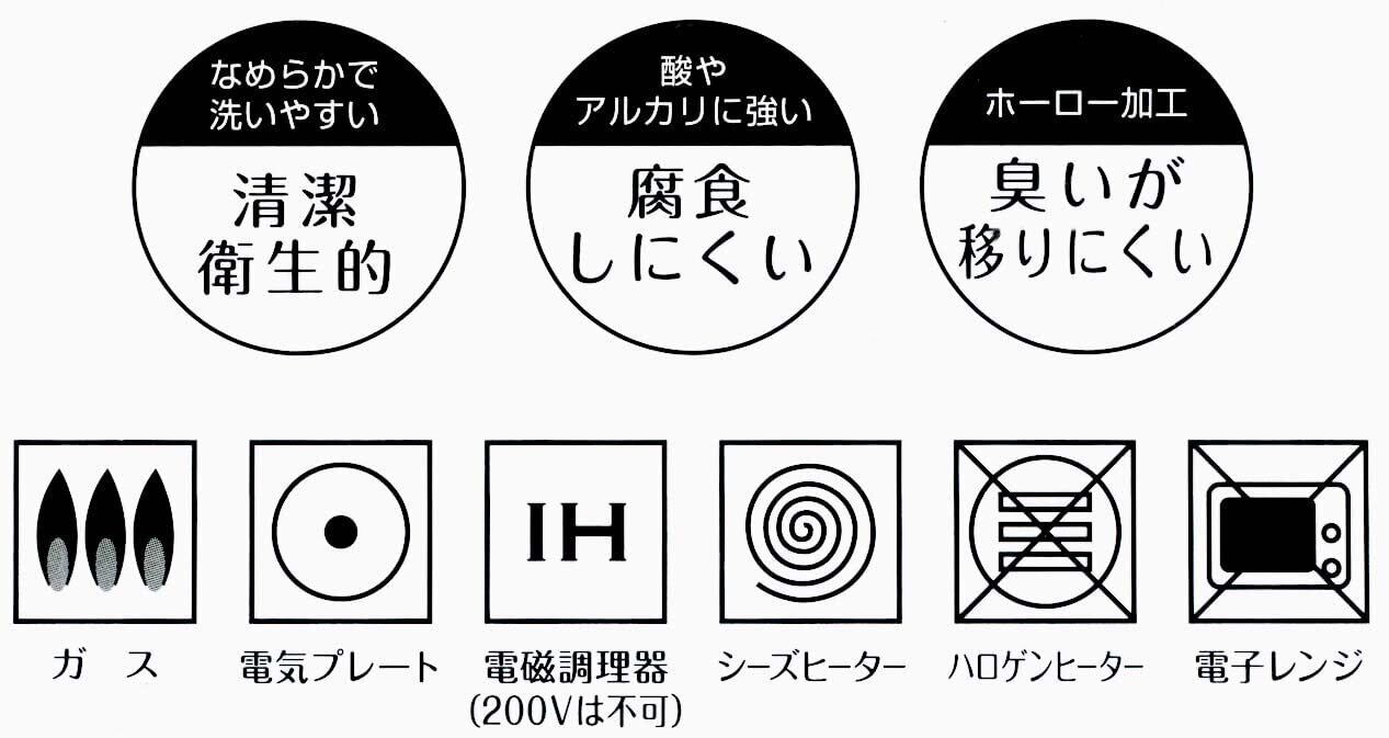対応熱源:ガス 電気プレート IH電磁調理器 シーズヒーター