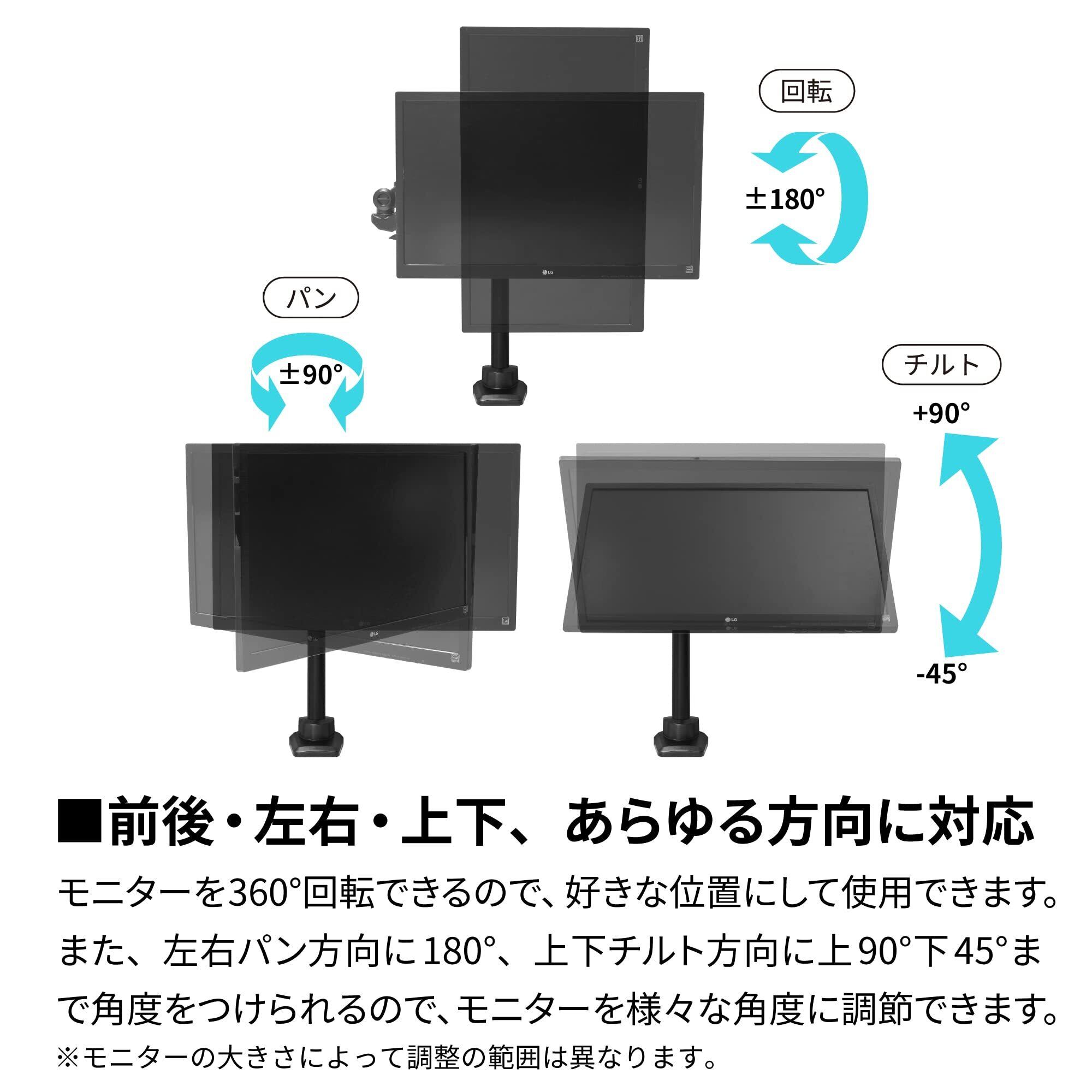 アーキス(Archiss) モニターアーム ガススプリング式 ブラック 32インチ(2~8kg)まで対応 AS-MABG03