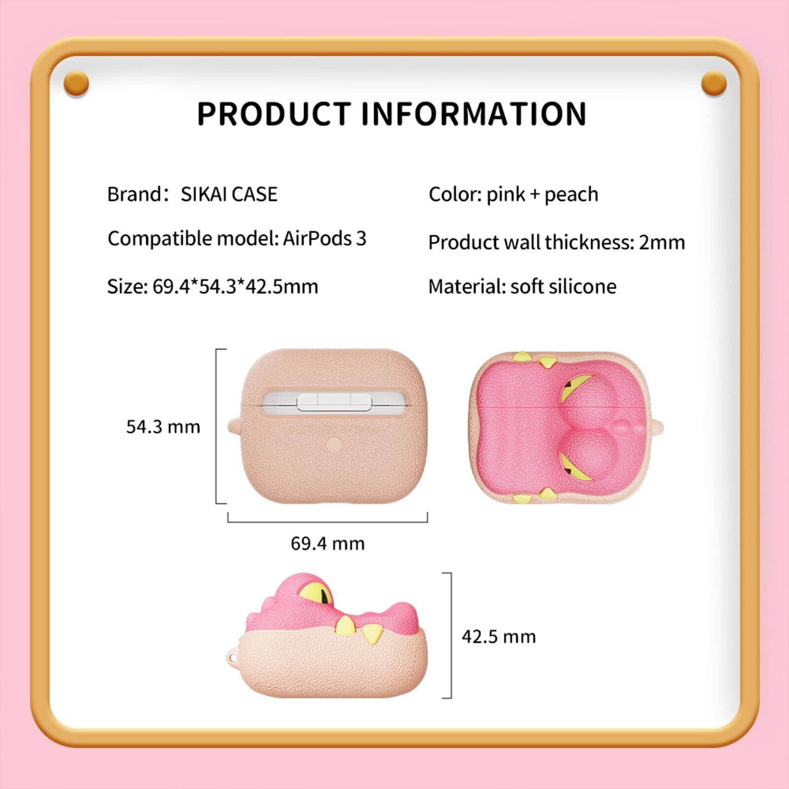 SIKAI CASE ケース AirPods 第3世代に適用【1個入り ピンク】 新設計 シリコン 保護ケース AirPods 第3世代 カバー エアーポッズ 第3世代 保護 ケース アップルイヤホン保護ケース Airpods 3用 収納ケース 耐衝撃 軽量 防塵 紛失防止 持ち運び便利 クロコダイル おしゃれ PINK (AirPods 第3世代 ピンク)