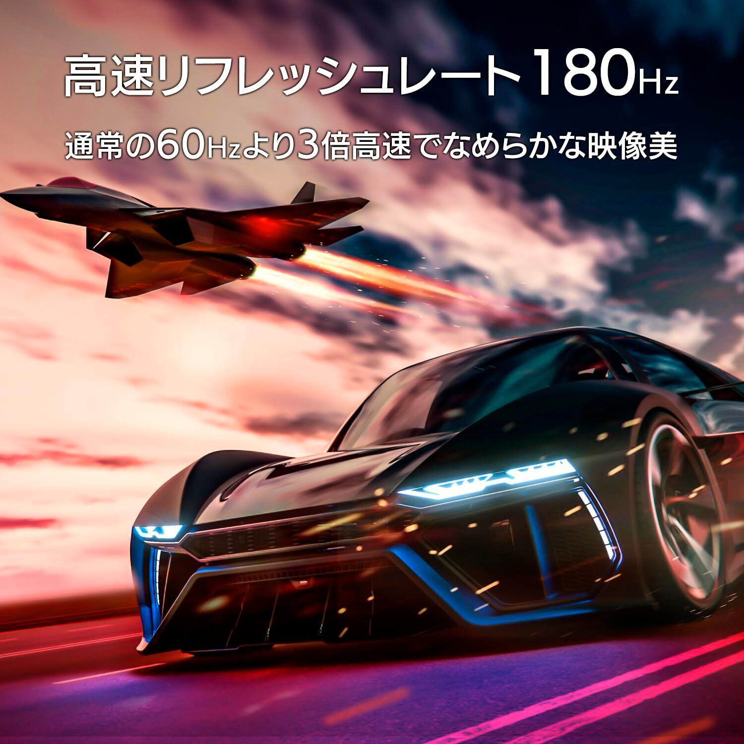 【180Hzの高速リフレッシュレート対応】DisplayPortで最大解像度時に最大180Hzの高速リフレッシュレート対応。なめらかで美しい映像を表示可能。FPSなどのスピード感あふれるゲームにおすすめです。※リフレッシュレートの上限は出力機器により異なります。※180Hzの出力に対応した機器が必要です。