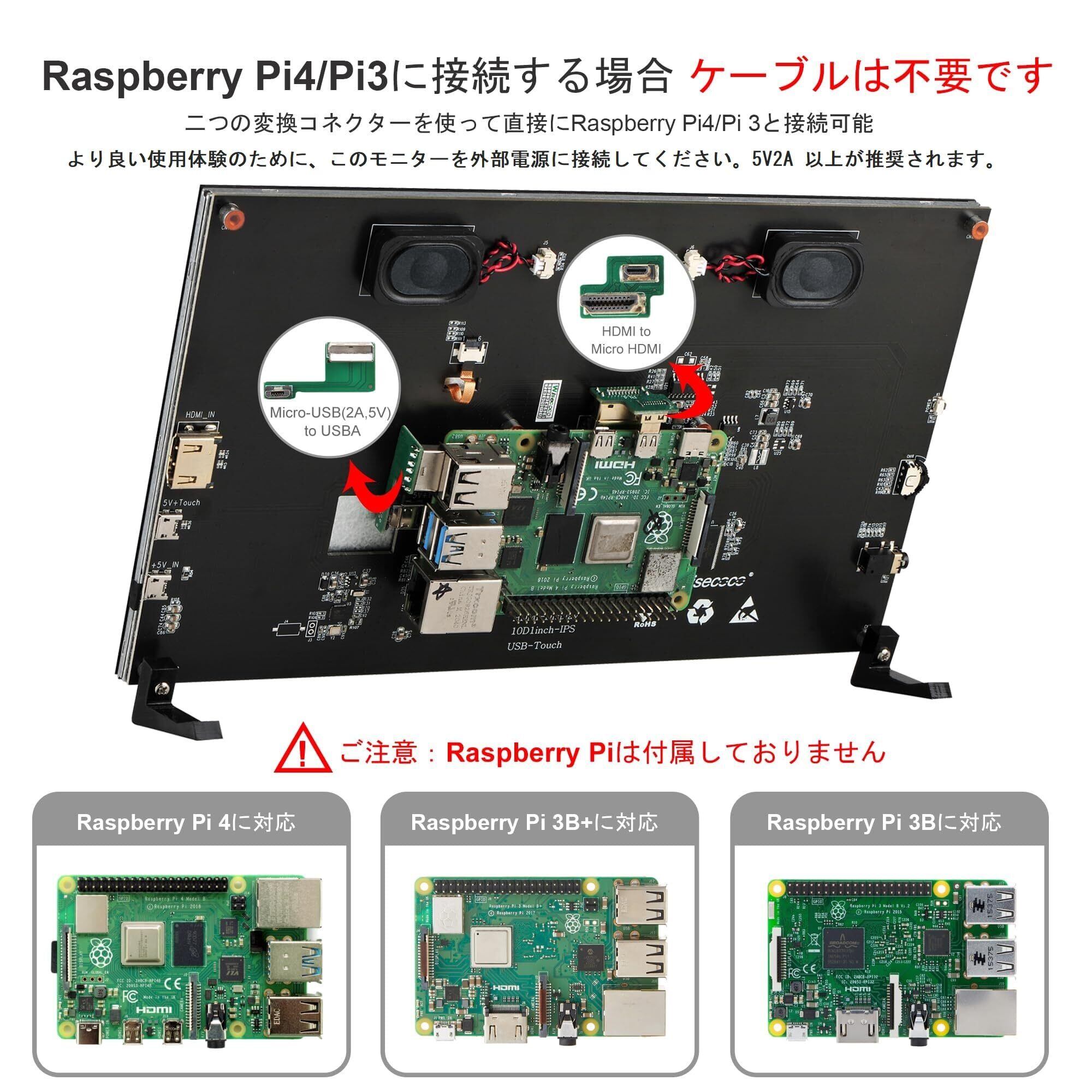 wisecoco Raspberry Pi用モニター 10.1インチ HDMI端子搭載 スピーカ内蔵 タッチスクリーン IPS 1024 x 600 LCDモバイルディスプレイ ホストサブモニター デュアルスピーカ 変換端子付属