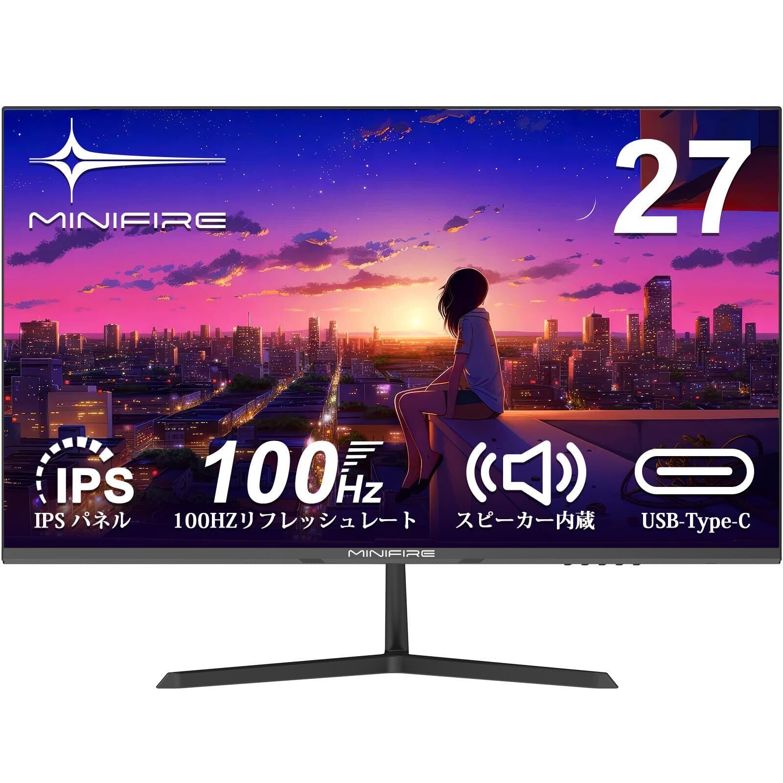 Minifire モニター27インチ フルHD 1080p IPS ディスプレイ 100Hz USB-Type C スピーカー内蔵 Adaptive Sync HDR10 sRGB 110% ブルーライト軽減 フリッカーフリー VESA対応 フレームレス USB-C/HDMI ポート (27X3A)