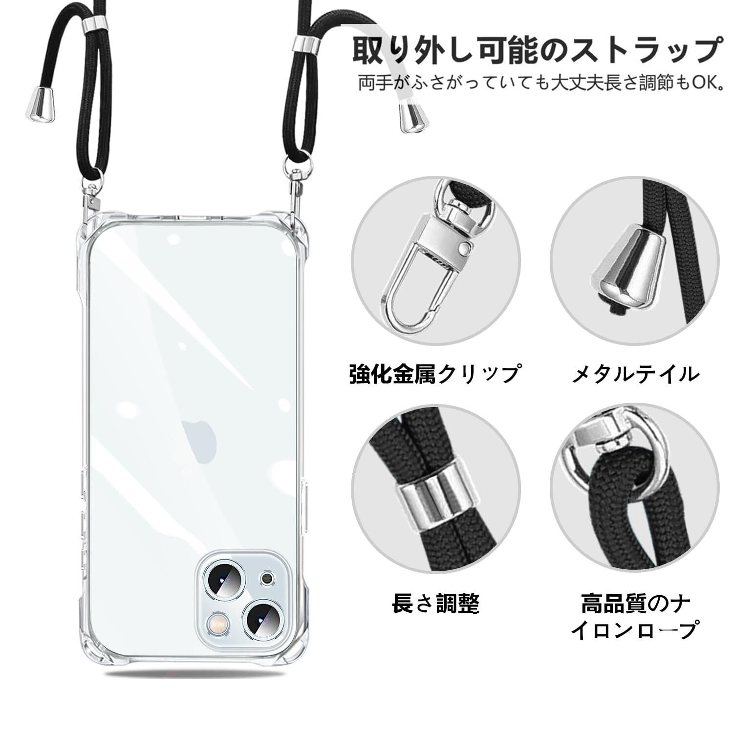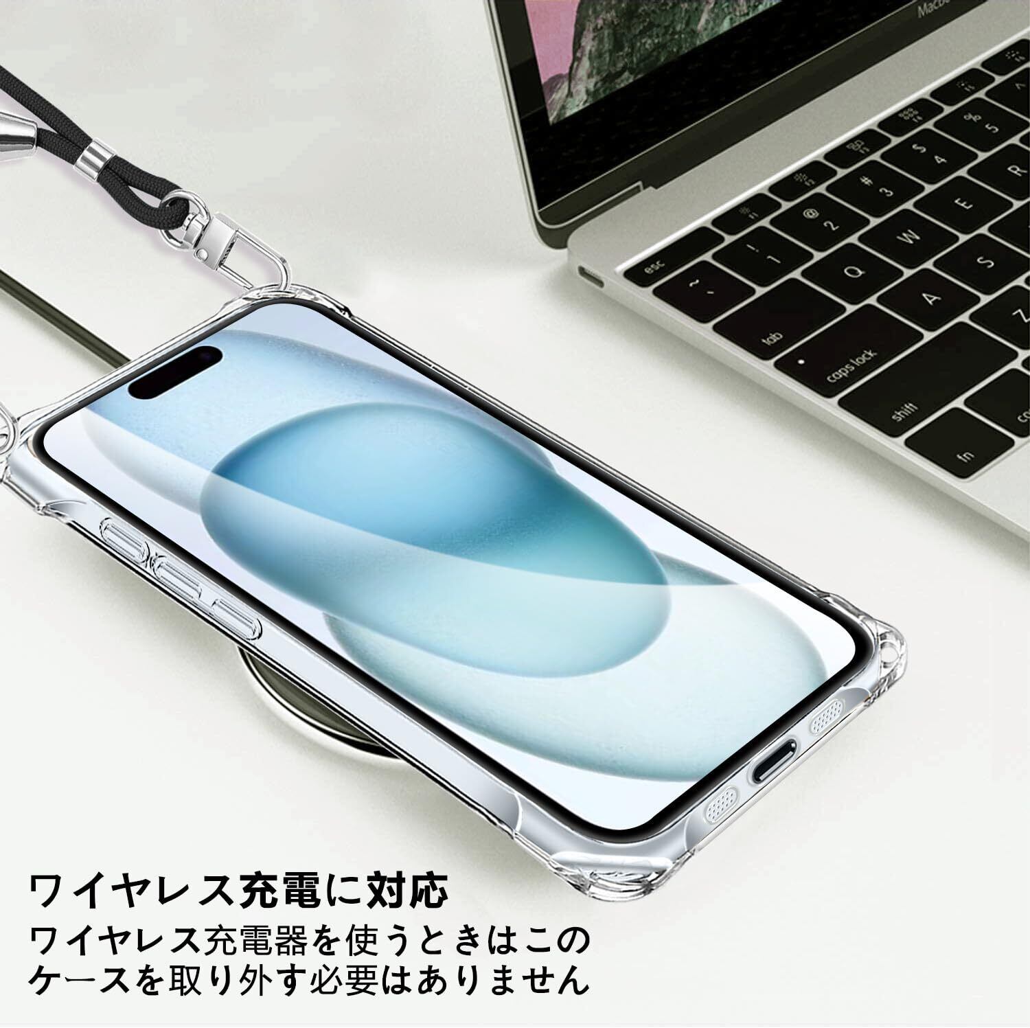 iPhone 15 用 ケース クリア ショルダー iPhone15 用 スマホケース アイフォン15 カバー 肩掛け 斜めかけ 縄掛けケース 透明 薄型 軽量 TPU 携帯ケース 紐付き 斜めがけ 織りストラップ付き ネックストラップ ショルダー ケース 縦/横 2WAY 長さ調整可能 取り外し可能 落下防止 紛失防止 ワイヤレス充電対応 (クリア)