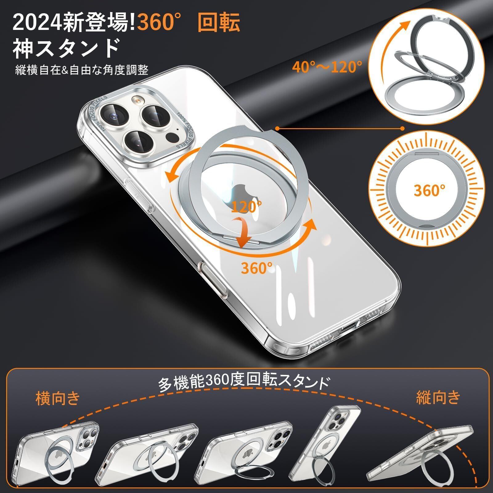 iPhone 16 Pro 用 ケース Magsafe対応 ワイヤレス充電 360°回転スタンド 縦横両対応 Gunwon スマホケース iphone16 Pro 用 米軍規格 耐衝撃 半透明 マット感 マグセーフ 防指紋 リング マグネット搭載 アイフォン16プロ 用 カバー「クリア」