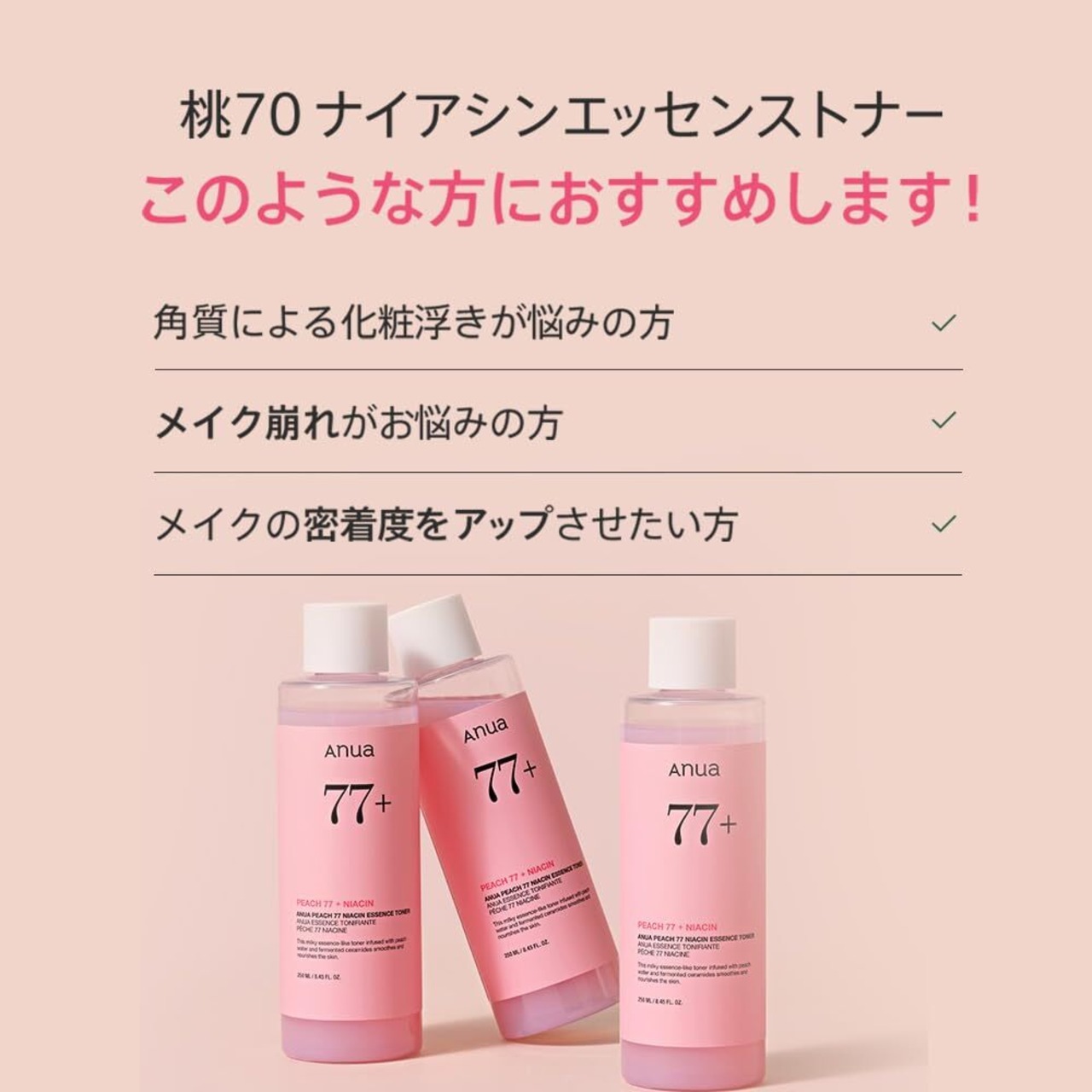 ANUA(アヌア) 桃77ナイアシンエッセンストナー250ml 化粧水 水光肌 ツヤ肌 角質 毛穴 水分保湿 乾燥肌 混合肌 peach niacin essence toner スキンケア 韓国化粧水 韓国コスメ 【公式・正規品】