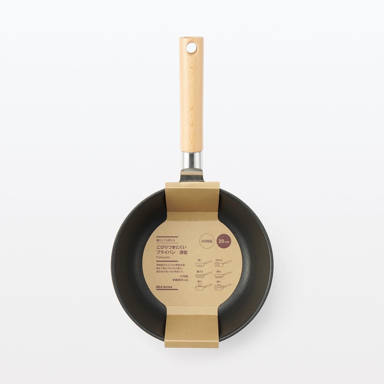 無印良品 鍋としても使えるこびりつきにくいフライパン 直径20cm 深型 IH対応 83453718