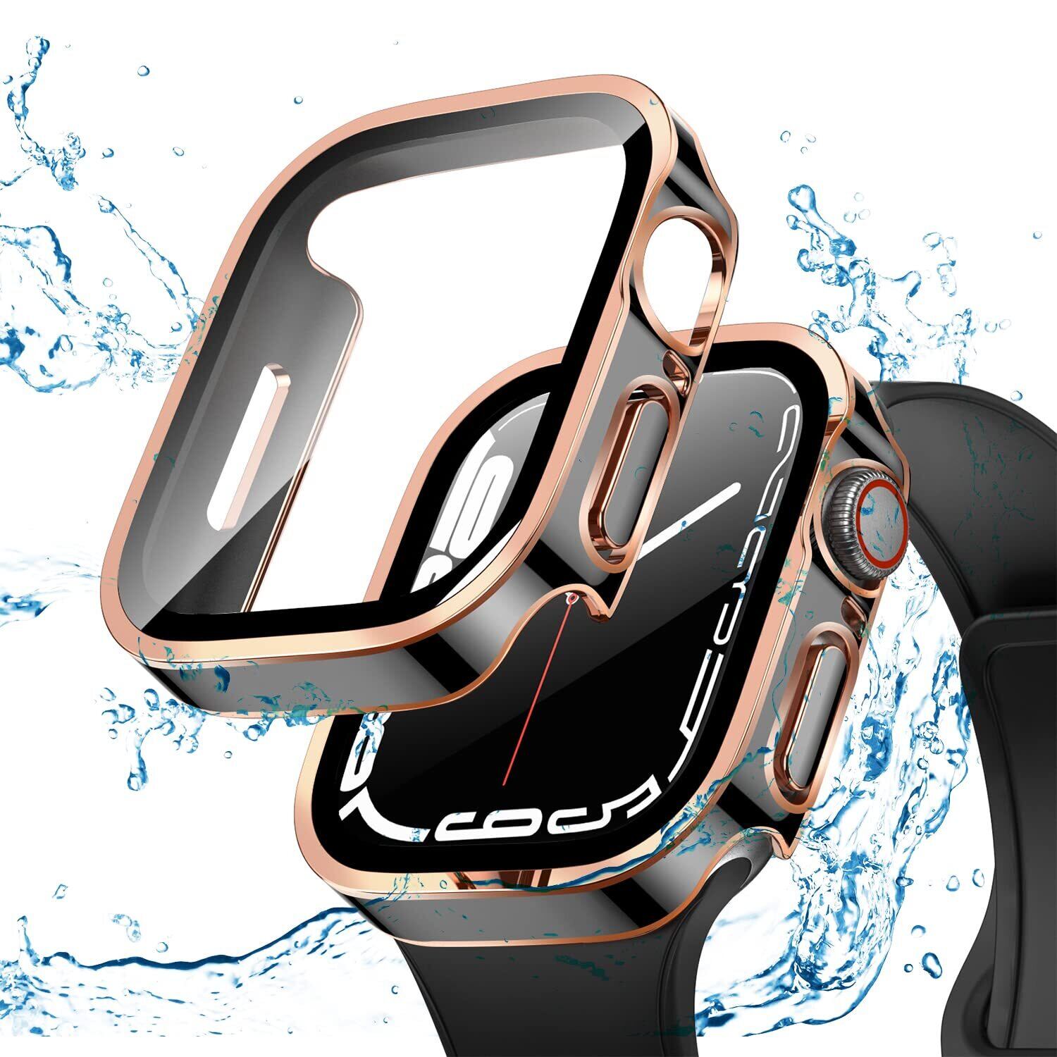 【2023冬強化版】ILYAML for Apple Watch ケース Apple Watch ケース 対応 IP68完全防水 バンド 水泳・スポーツ専用 防水ケース 3D直角エッジデザイン Apple Watch Series7/8/9 41mm対応 光沢のブラック&ローズゴールド