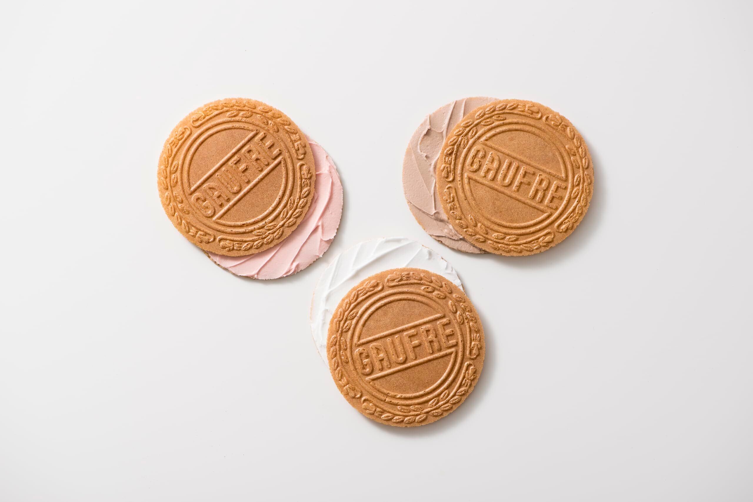バニラ、ストロベリー風味、チョコレートの3種類の味がひとつの缶にアソートされたちいさくてかわいいサイズのゴーフルです。