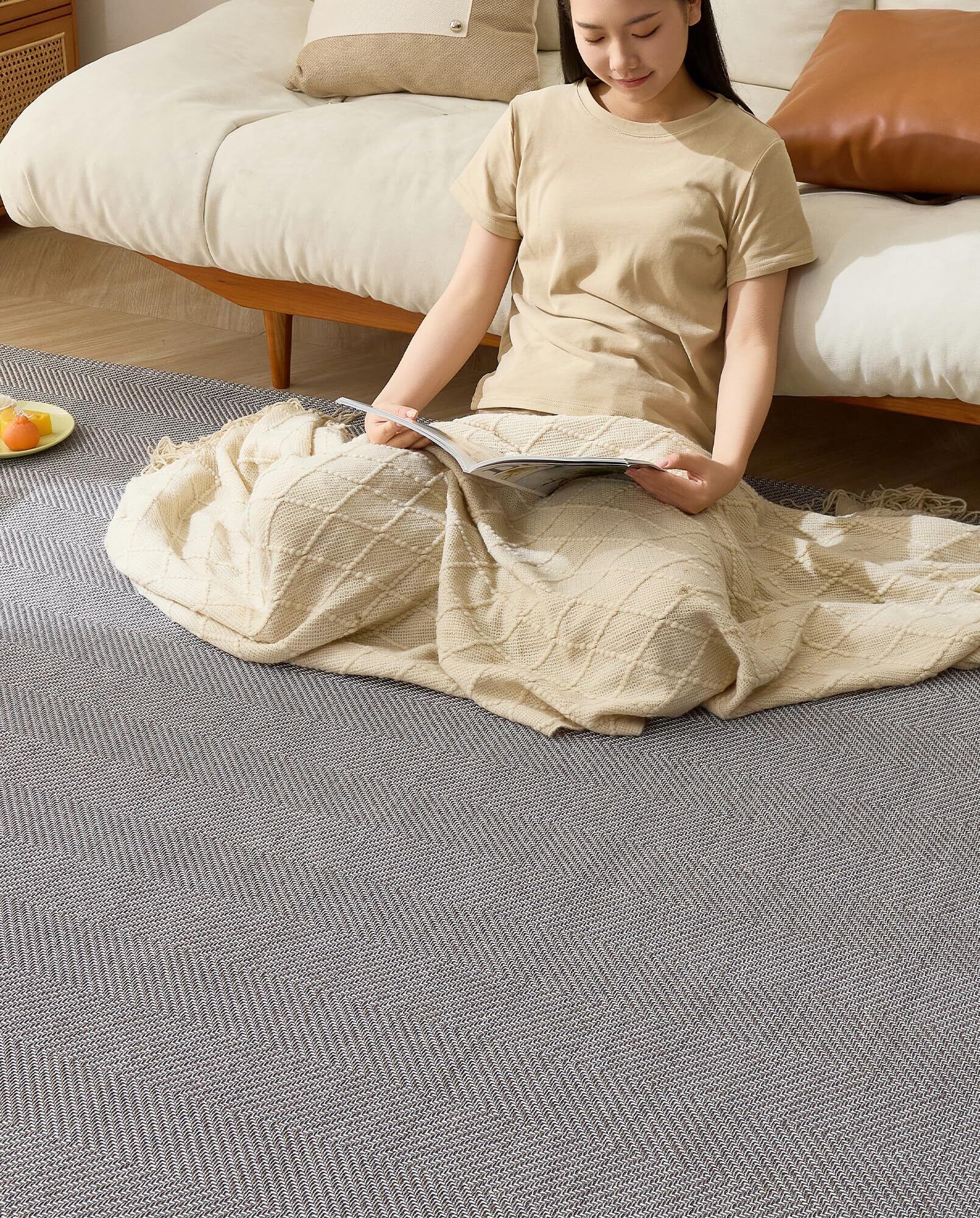 VK Living ラグ カーペット 春 夏 130X190cm ラグマット 1.5畳 【大人の雰囲気 ヘリンボーン柄】 オールシーズン おしゃれ 絨毯 北欧 リビング マット 滑り止め 幾何柄 オールシーズン適用 床保護 防音 グレー