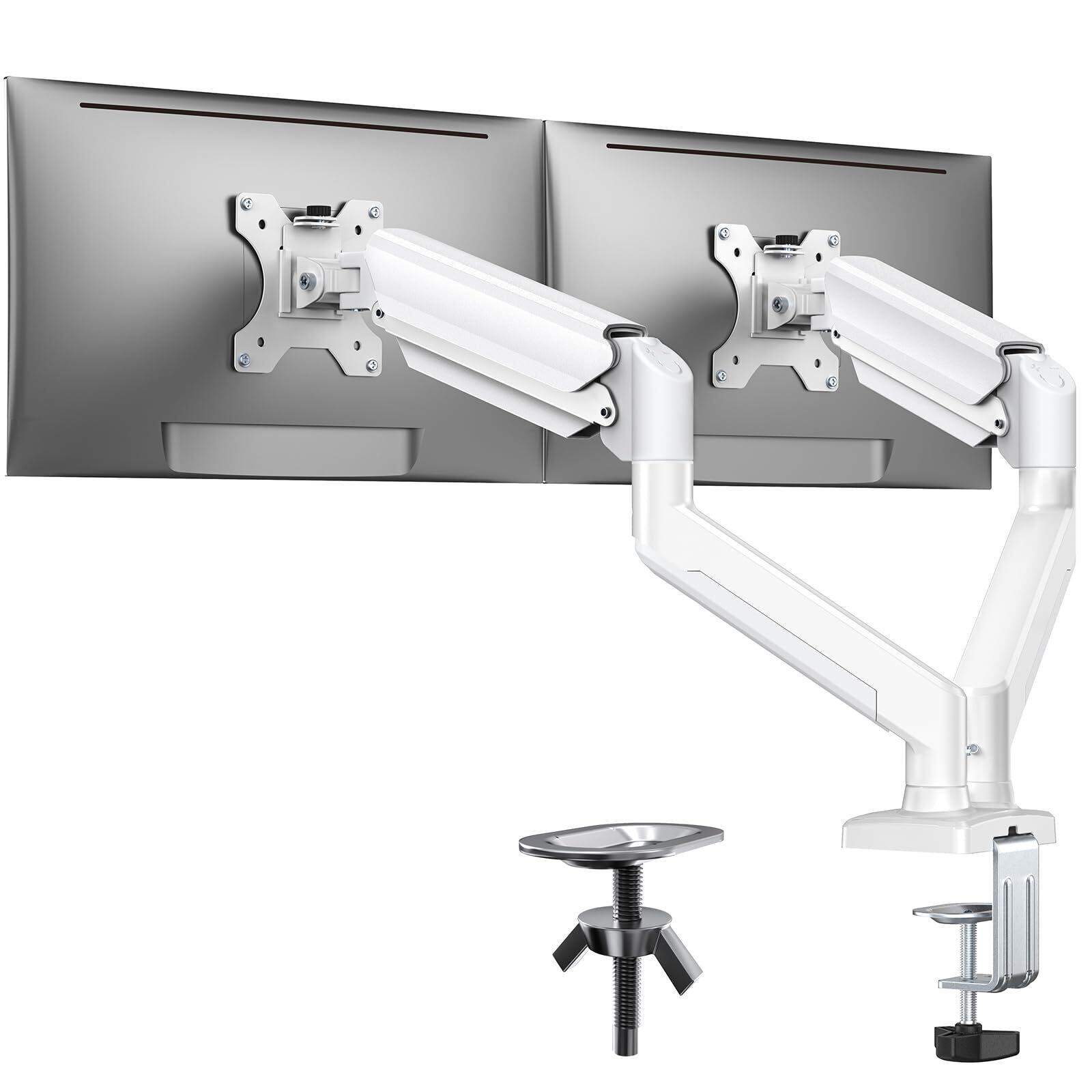 ErGear モニターアーム デュアル 2画面 白 ホワイト 17~32インチ対応 耐荷重10kg ガススプリング式 ディスプレイアーム PCアーム ロング VESA 75x75mm 100x100mm対応 クランプ式 グロメット式 多角度調節 配線収納