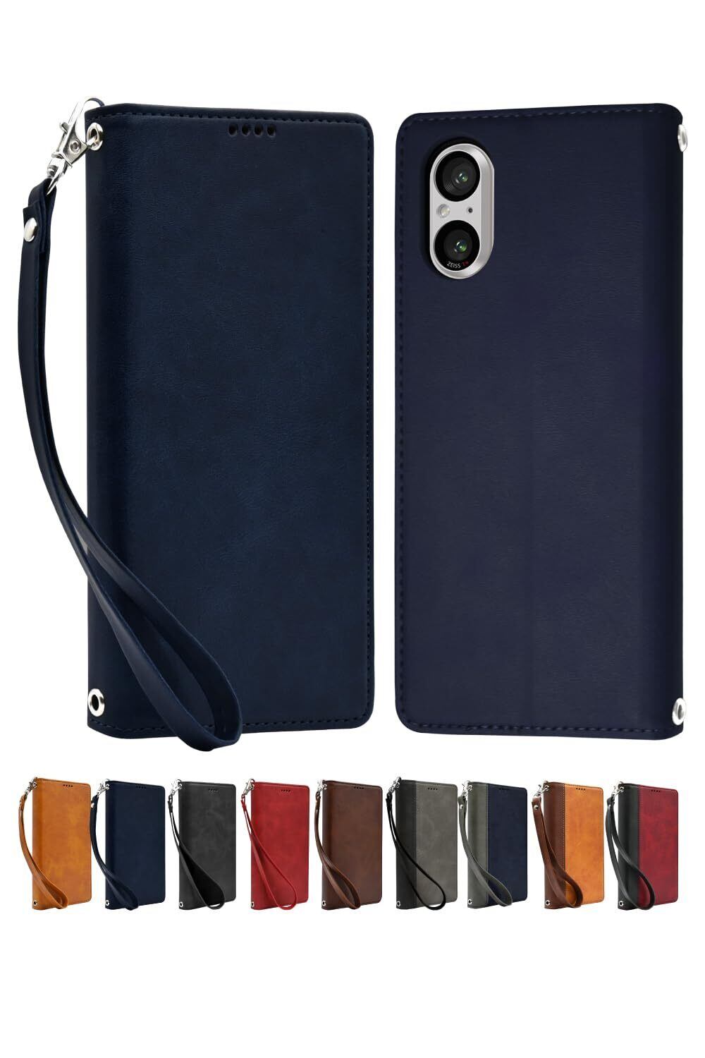シズカウィル Xperia 5 v SO-53D SOG12 XQ-DE44 ケース カバー 手帳型 本革調 レザーケース ネイビー 1個入り