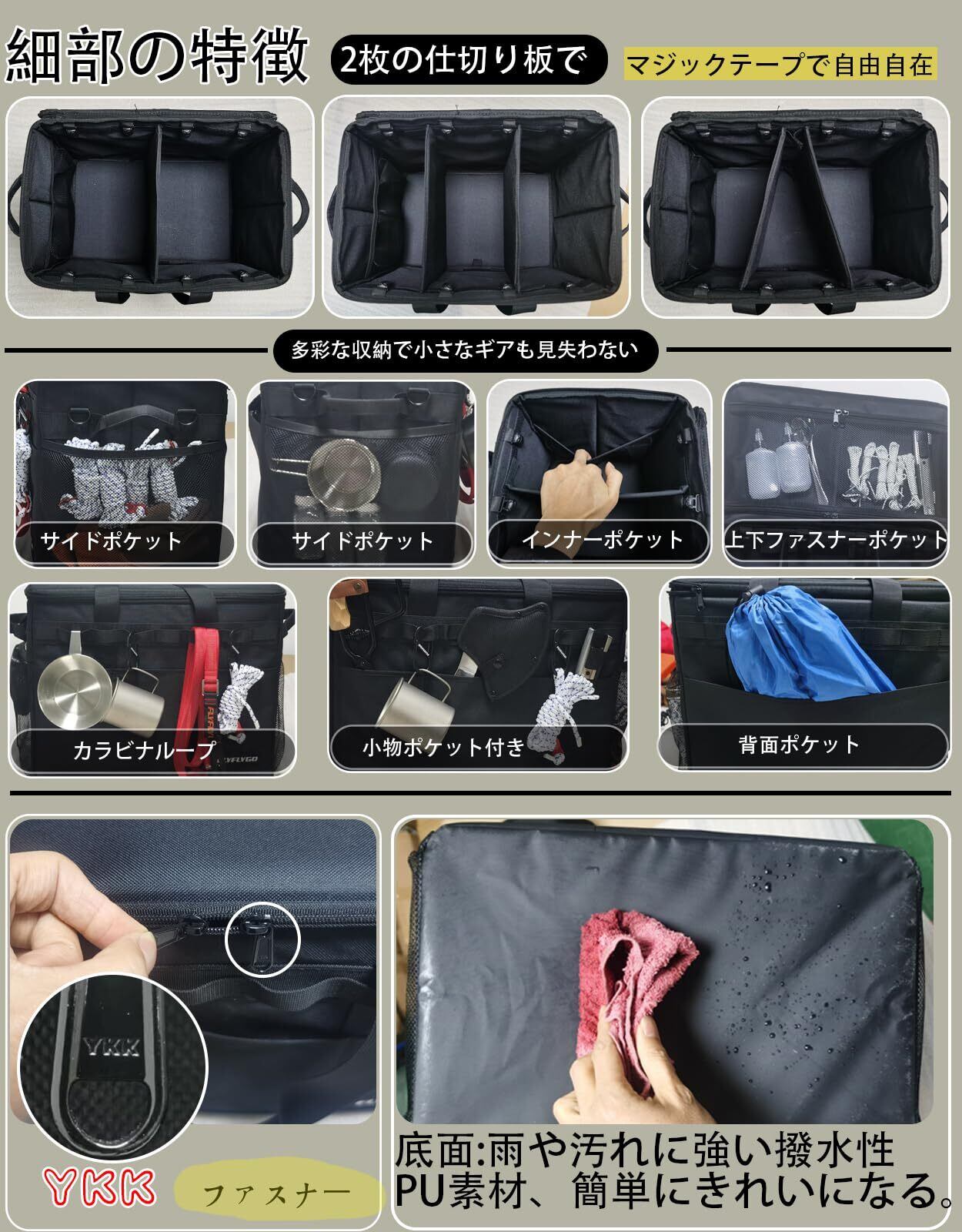 FLYFLYGO キャンプ コンテナ ソフト キャンプ 収納ボックス ソフトコンテナ アウトドア 自立式収納ボックス 折りたたみ可能なハード収納ボックス 仕切り板付 ショルダーストラップ付 大容量 (37Lブラック)