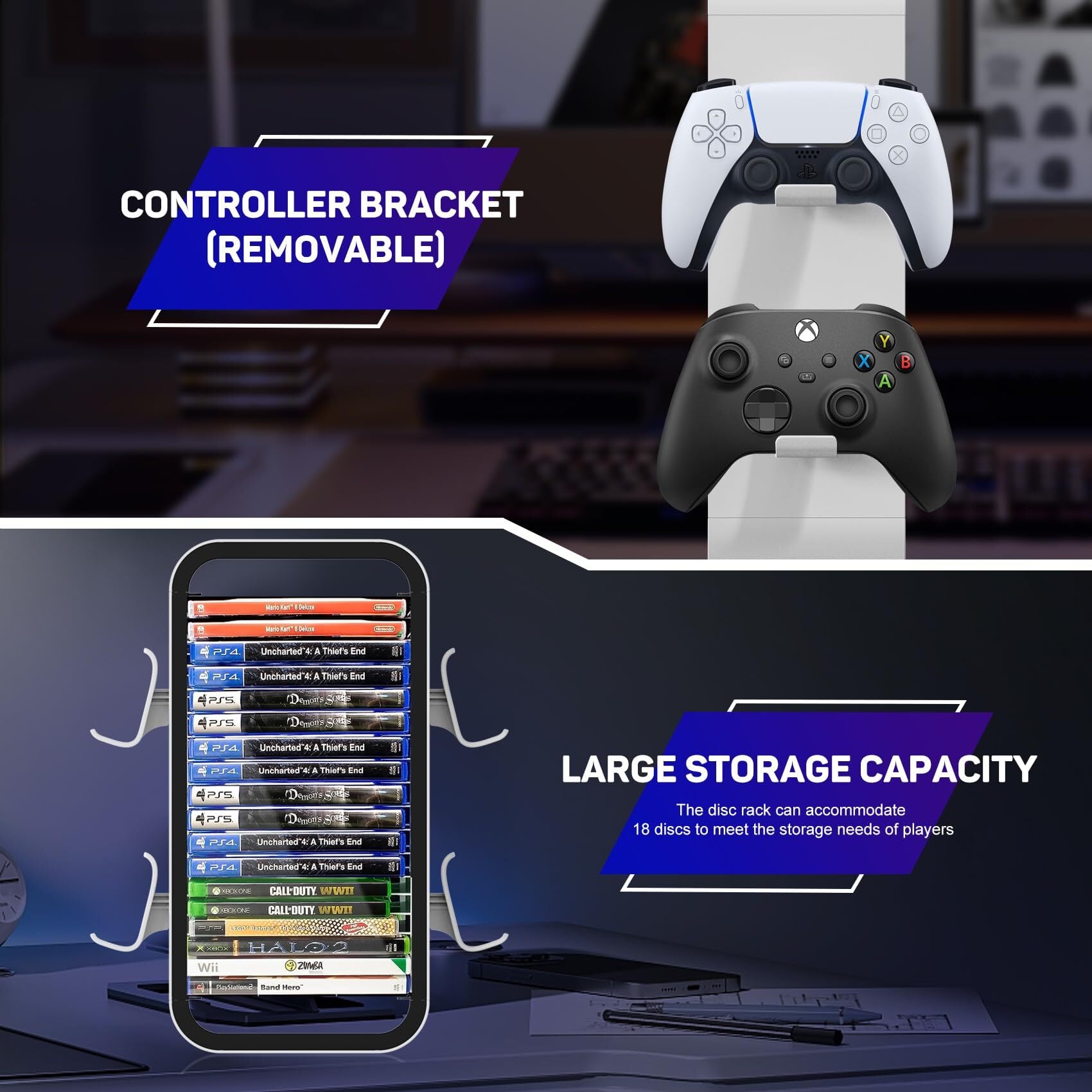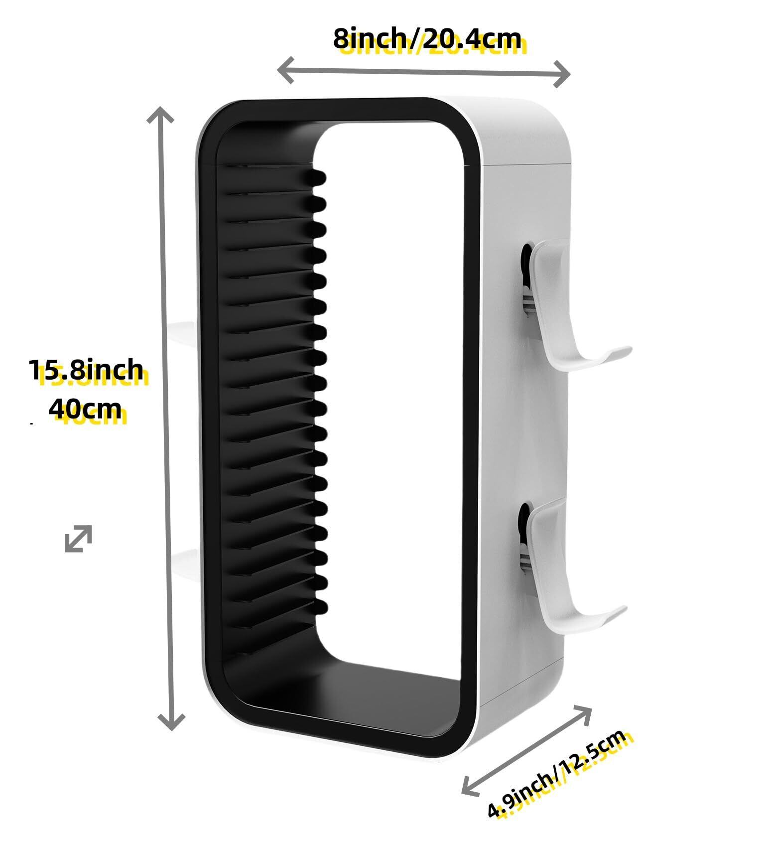 wigmoaゲームソフト 収納タワー ストレージスタンド PS5/PS4/PS3/Xbox Series S & X/Switch ブルーレイ【18枚収納可能+コントローラーホルダー付き】ゲームカセット 便利グッズ 省スペース 縦置きスタンド. OYO-1 (白/黒)