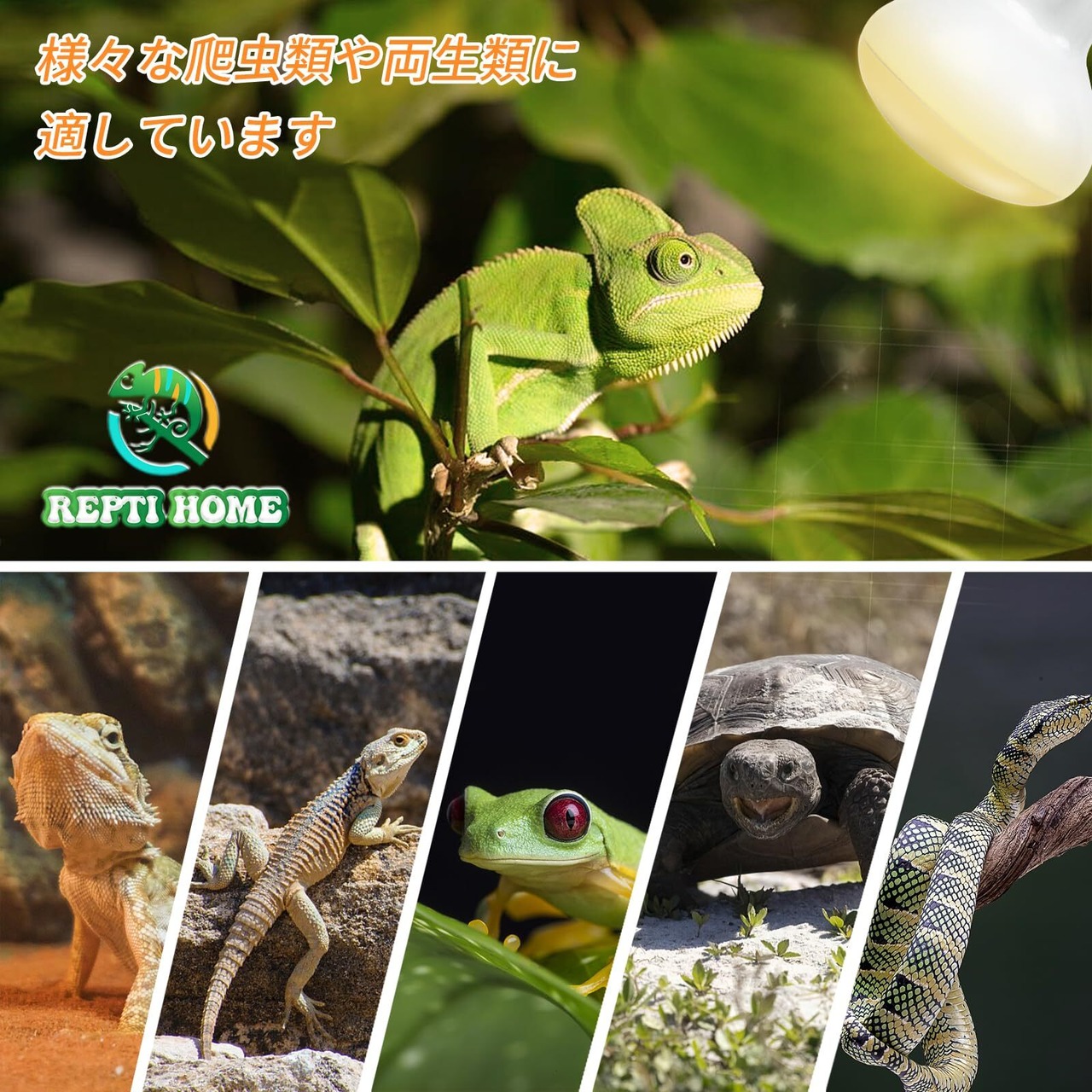 REPTI HOME バスキングライト 爬虫類 サングロー 100W 2個 爬虫類 ライト 紫外線ライト 爬虫類 日光模擬 UVA&昼用集光型スポットランプ 爬虫類 保温電球 ヒゲドラゴン、トカゲ、亀等用