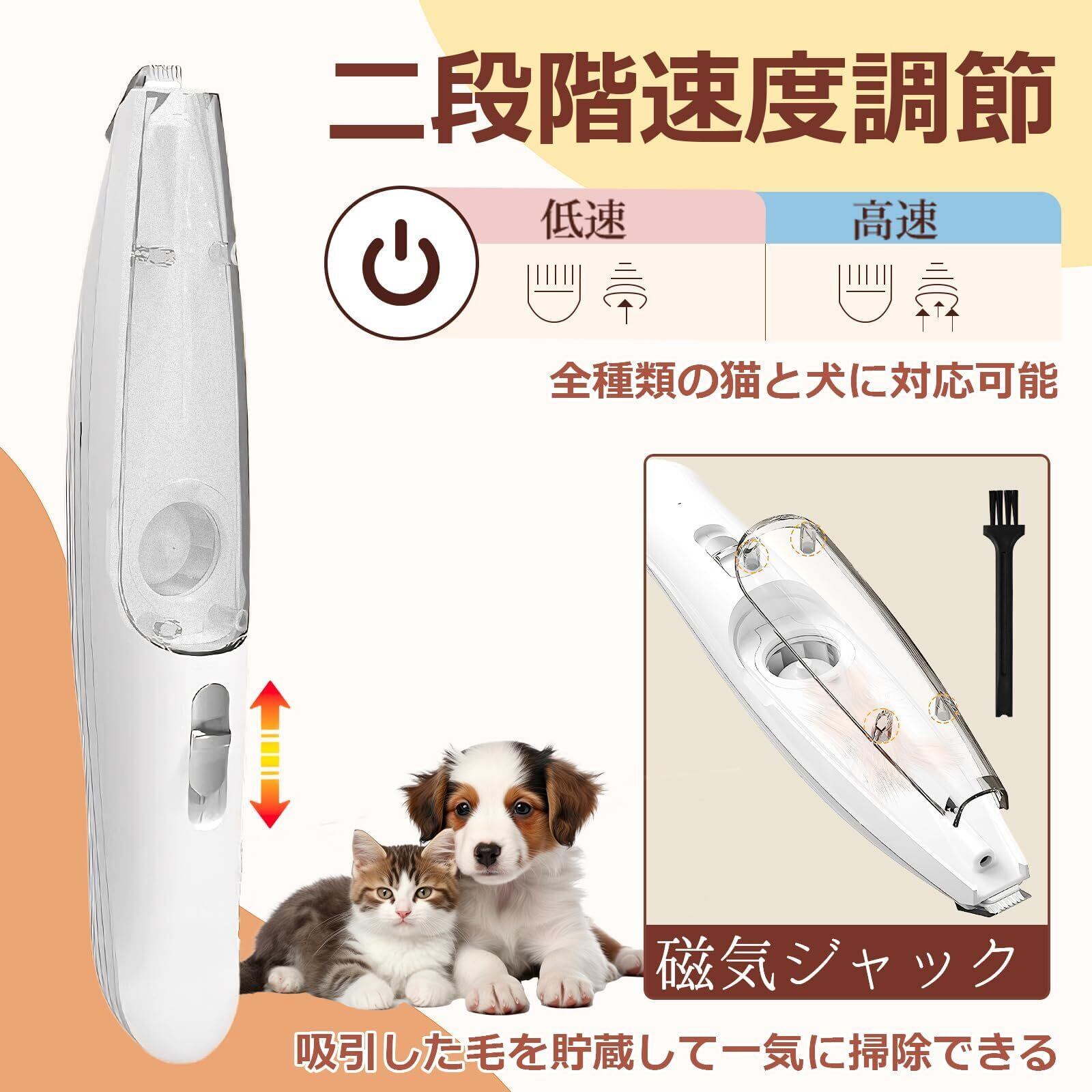 Athvcht ペット用バリカン 吸引式 犬用バリカン USB充電式コードレス 猫 バリカン LEDライト 部分カット 犬 電動バリカン 2段階スピード ペット バリカン 犬 足裏用 吸引 肉球 顔周り お尻周 爪切り 全身カット 低騒音 初心者プロ対応 日本語説明書付き (ホワイト)