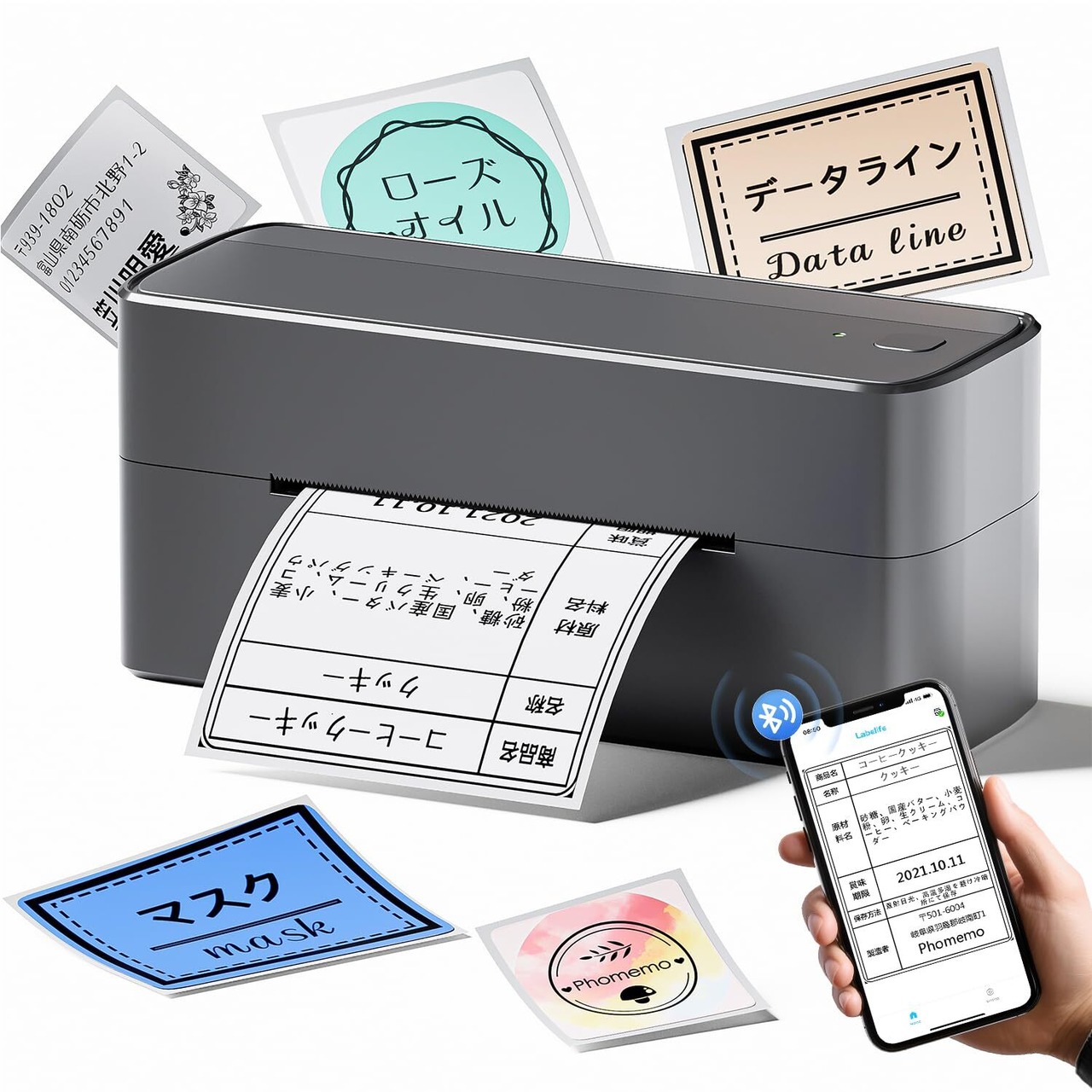 ラベルプリンター Phomemo 241-BT サーマルプリンター 宛名ラベルプリンター 感熱 Bluetooth接続 約102*152mm (A6) ラベルシール対応 多機能ラベルライター 中小企業用 家庭用 日本郵便/クリックポスト/Ebay/Shopify/出荷/食品表示 バーコードプリンター スマホ対応 PC対応 はいいろ