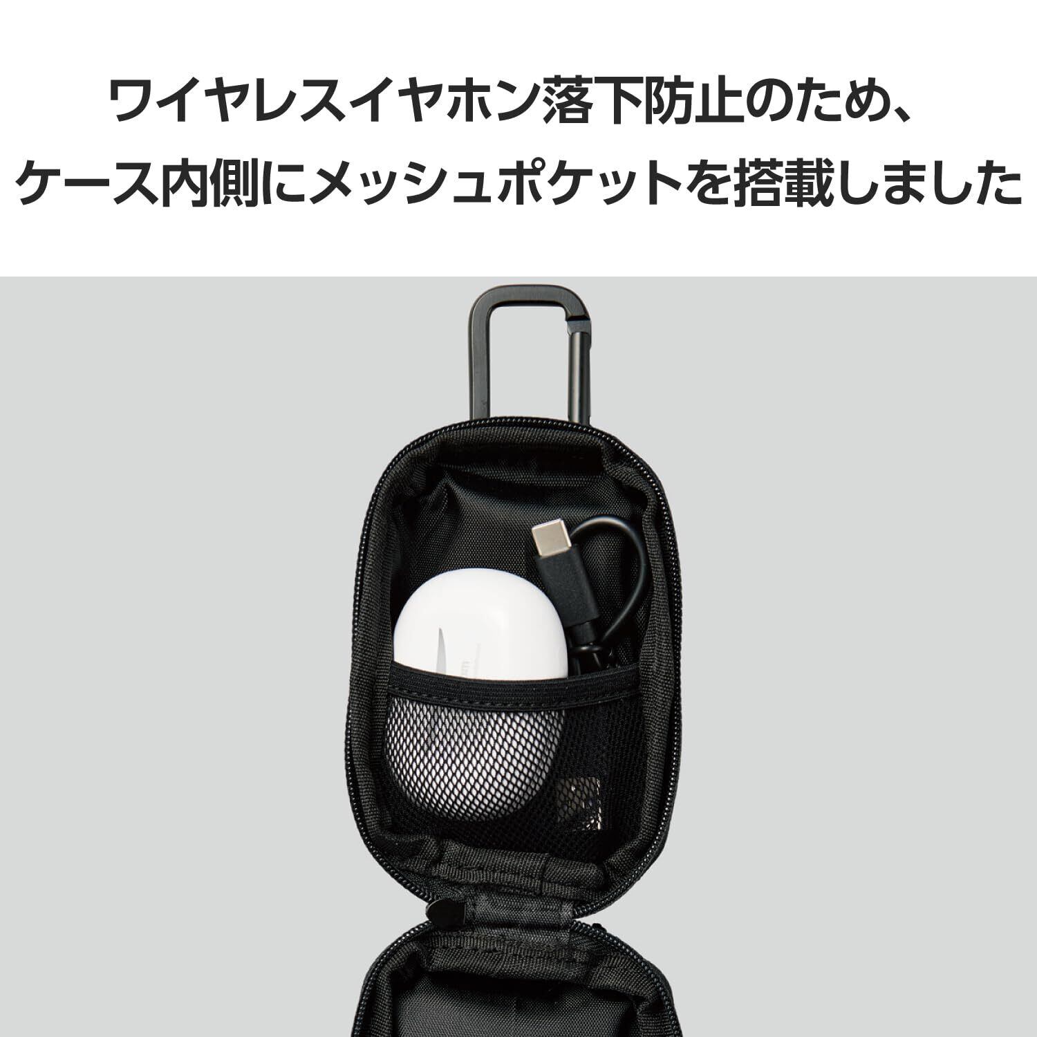 エレコム イヤホン ワイヤレスイヤホン ケース ポーチ 汎用 Lサイズ 撥水素材 パファー素材 カラビナ付き クッション性 ブラック TWS-EP23PLBK