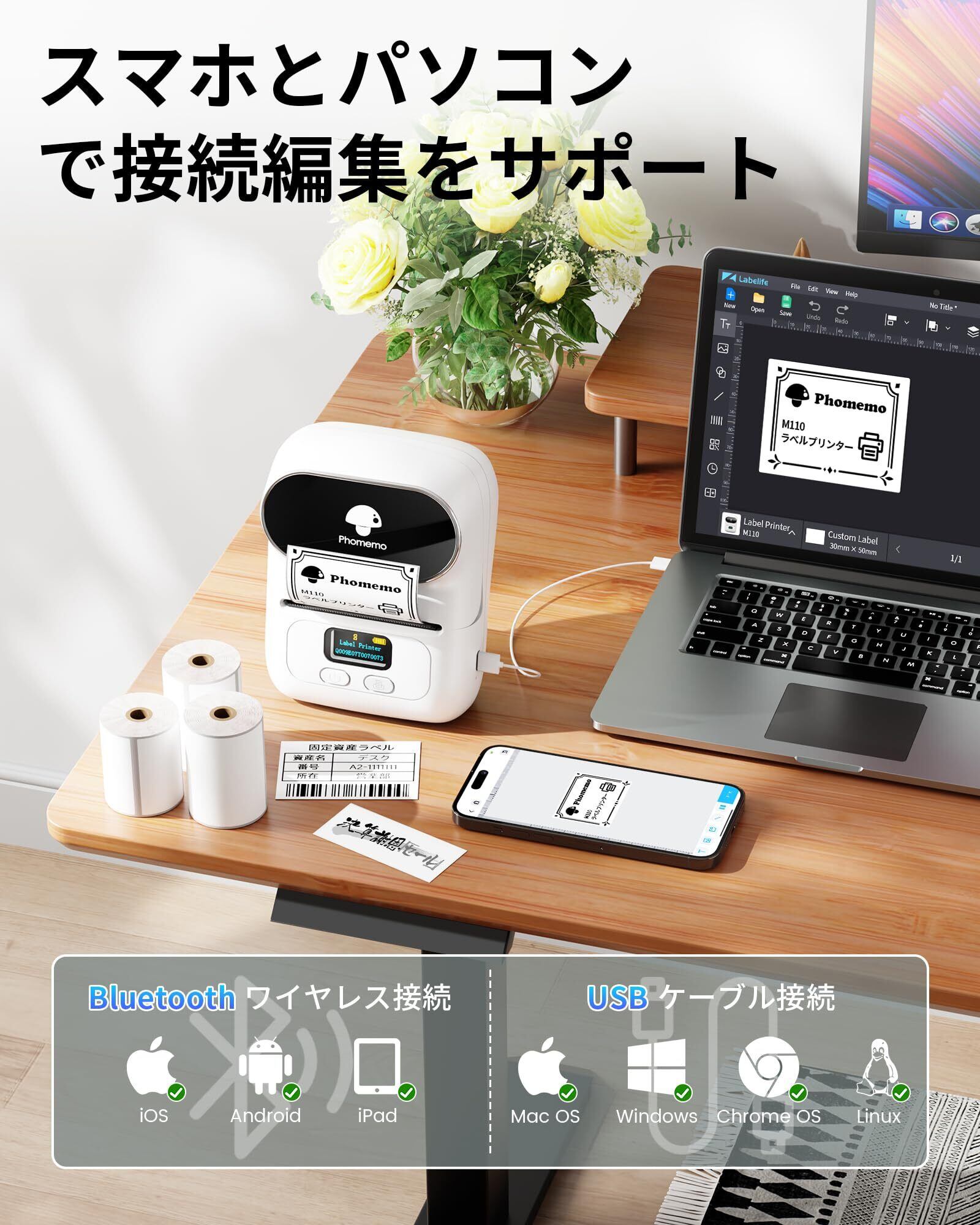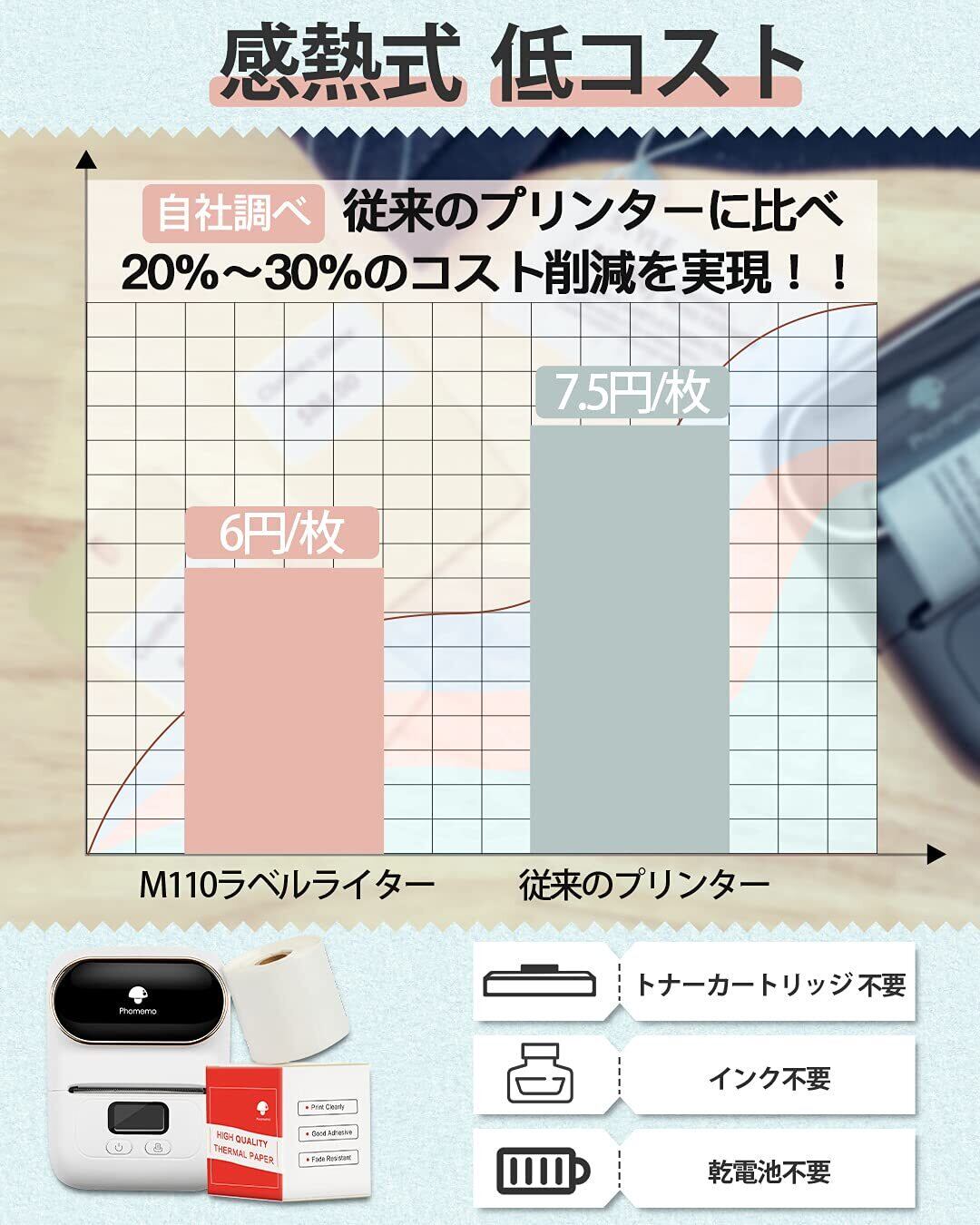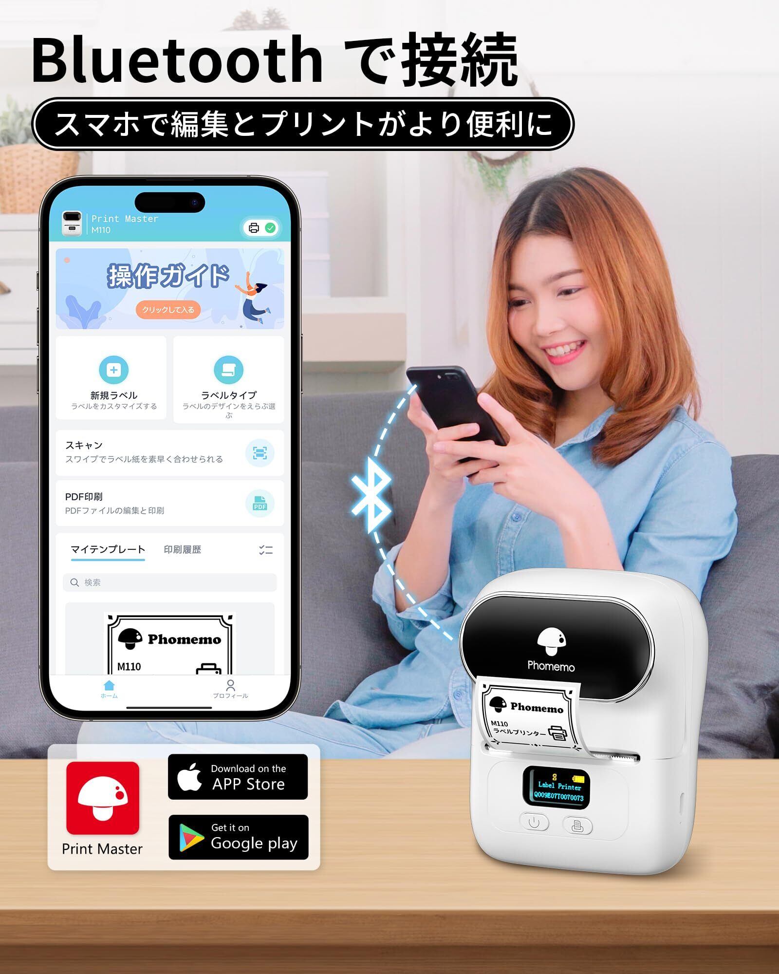 Phomemo M110 感熱ラベルプリンター スマホ・PC対応 ラベルライター 値札プリンター 業務用プリンター ラベルメーカー 宛名ラベルプリンター ラベル用サーマルプリンター シールプリンター バーコードプリンター Bluetooth接続 郵便宛名/値札/食品表示/梱包発送/アドレス/ラッピング/DIYラベル/作業/冷蔵庫収納/配送ラベル/整理収納/名前ラベルに適用 充電式