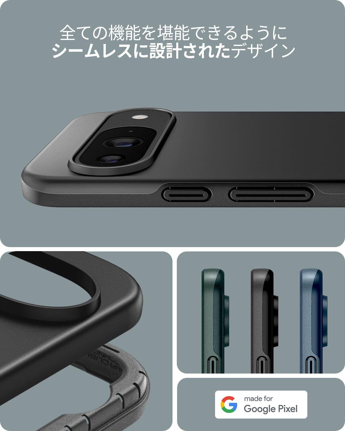 Spigen Pixel 9 / 9 Pro ケース 薄型 耐衝撃 軽量 さらさら 米軍MIL規格取得 2重構造 レンズ保護 指紋防止 擦り傷防止 マット仕上げ ワイヤレス充電対応 シン・フィット ACS07697(ブラック)