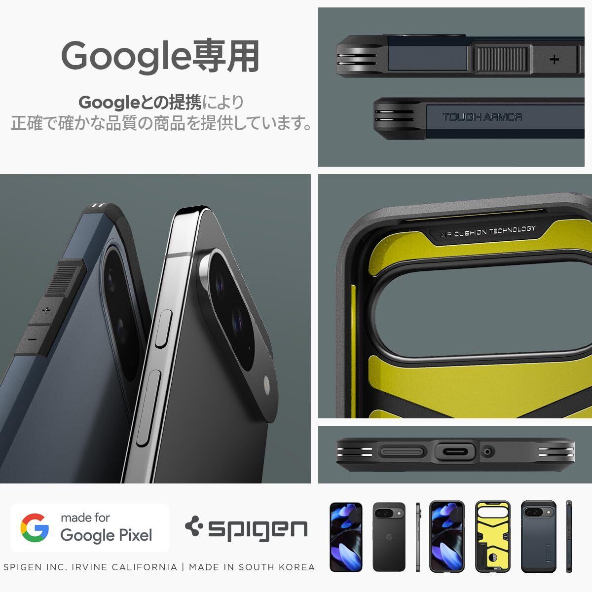 Spigen Pixel 9 / 9 Pro ケース 耐衝撃 スタンド付き 米軍MIL規格取得 耐衝撃 三層構造 スマホスタンド カメラ保護 傷防止 衝撃 吸収 ワイヤレス充電 タフ・アーマー ACS07693 (メタル・スレート)