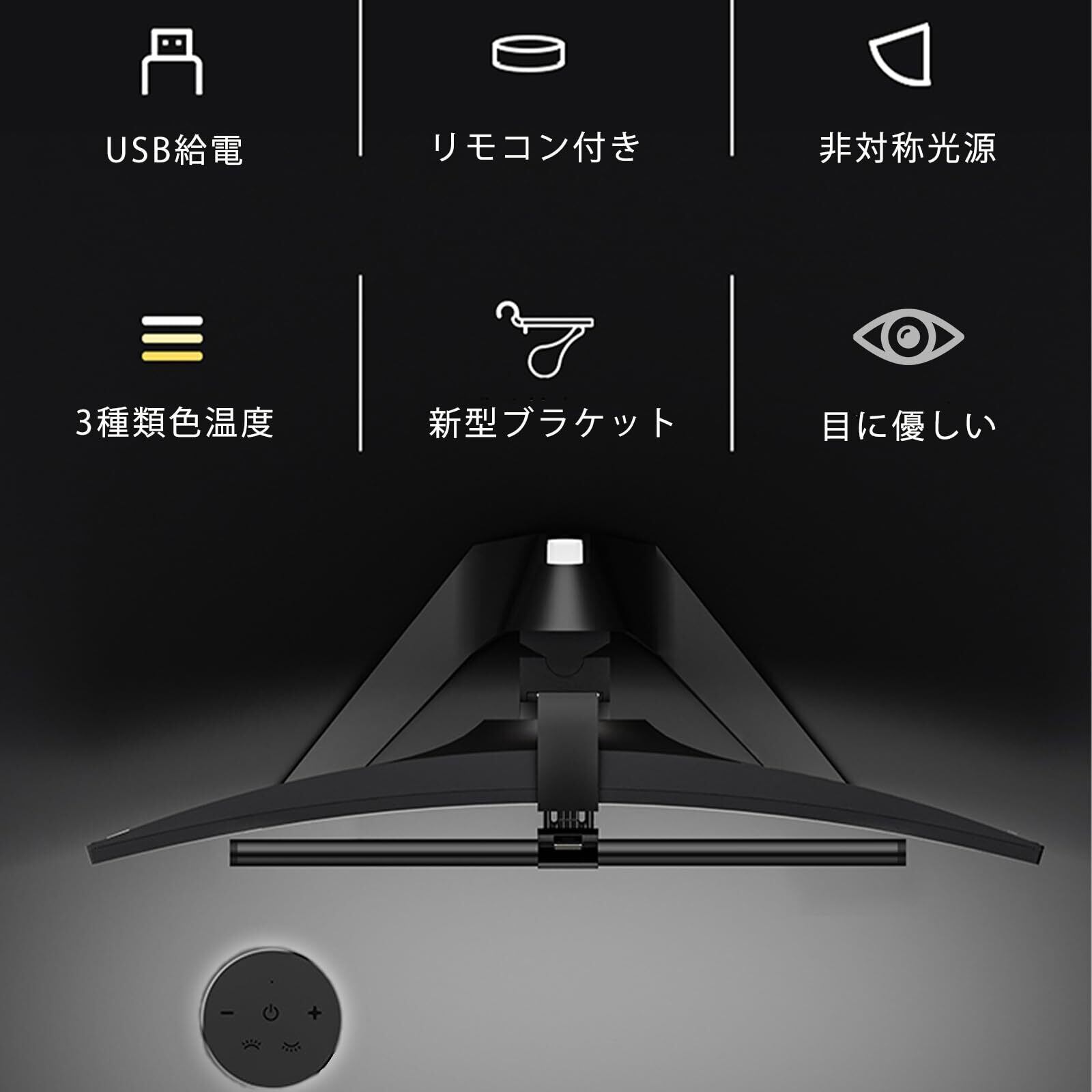 Iseebiz モニターライト 41cm 掛け式ライト 無段階調光 3種類色温度 PCライト モニター掛け式ライト 非対称配光 目に優しい 高演色性 記憶機能省スペース USB給電 明るさ調整可能 パソコン専用 読書/勉強/仕事 (51cmリモコン式)