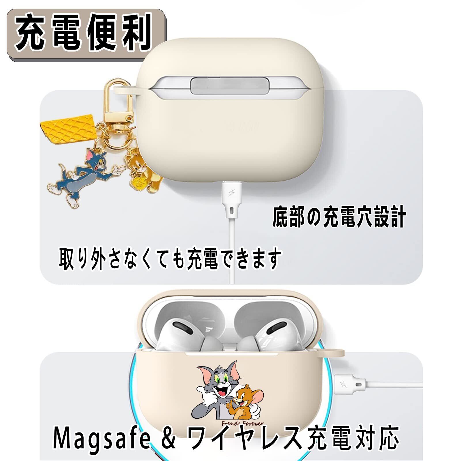 Ausrann AirPods Pro2/Pro ケース (2023/2022/2019) AirPods Pro 第1世代/第2世代 ケース エアーポッズプロ ケース えあーぽっつ プロ ケース Magsafe ワイヤレス充電対応 トムとジェリー かわいい シリコン おしゃれ Tom and Jerry 全面保護 分離式 TPU カバー 耐衝撃 傷防止 軽量 ラビナ・キーチェーン付き (Tom)