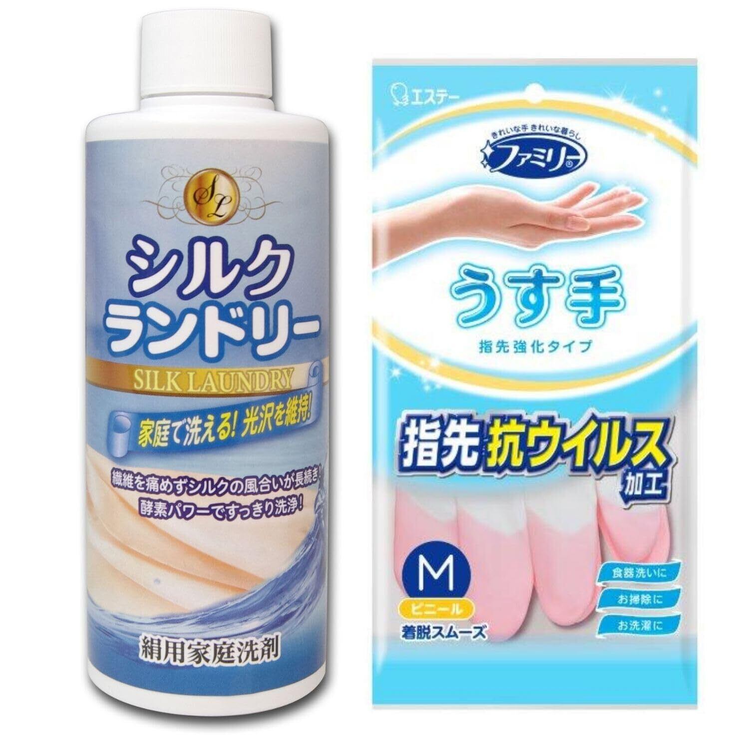 シルク用洗剤 シルクランドリー 手荒れ防止用ビニール手袋付き 絹用家庭洗剤 200mL【セット品】