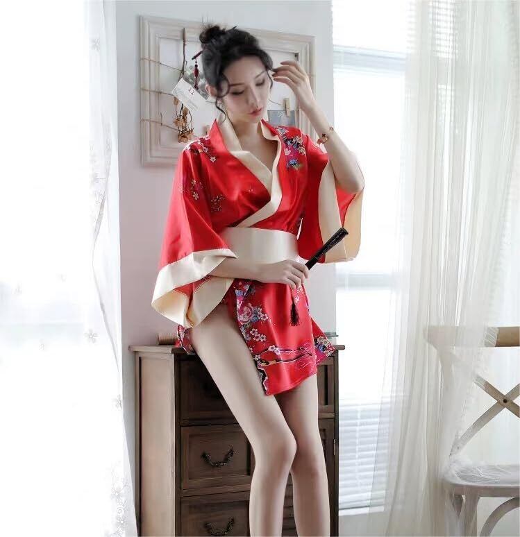 [Yomuasf] 浴衣 和服 3点セット コスプレ 浴衣 セクシー 花魁 鮮やか 艶やか セクシー ミニ ベビードール エロ ハロウィン コスチューム 和風 和装 ランジェリー 人気 cosplay