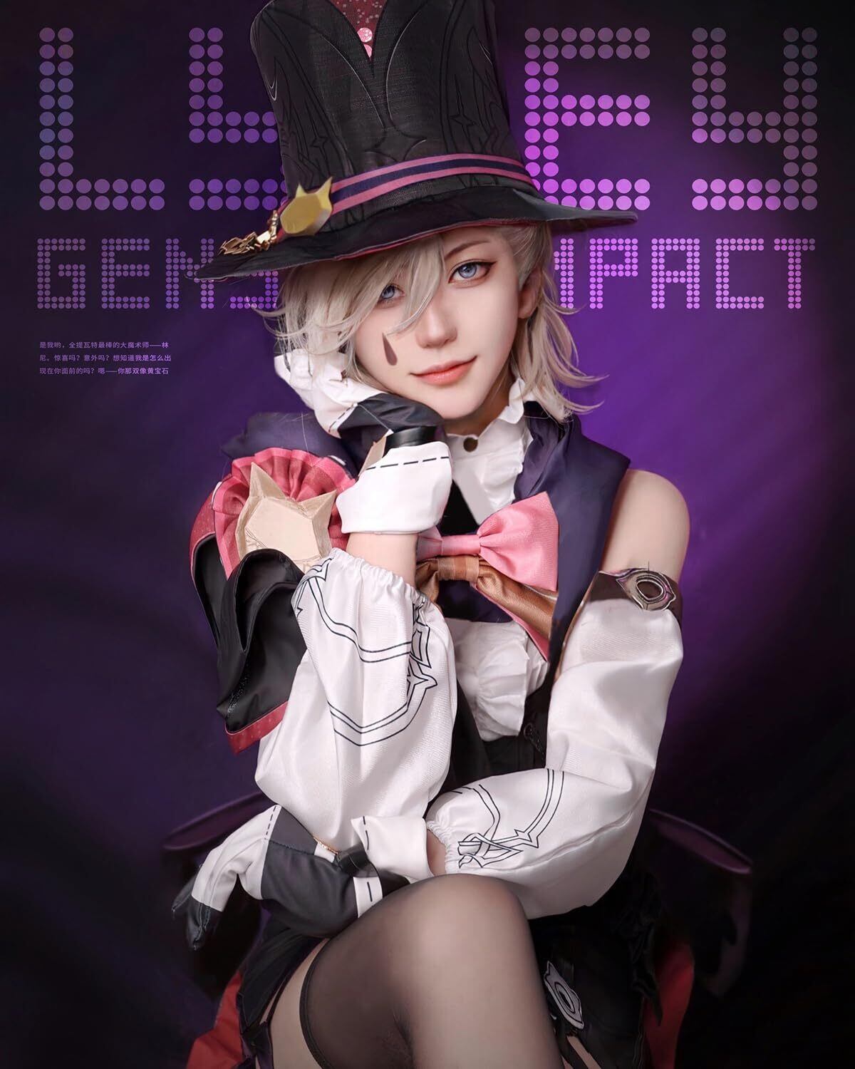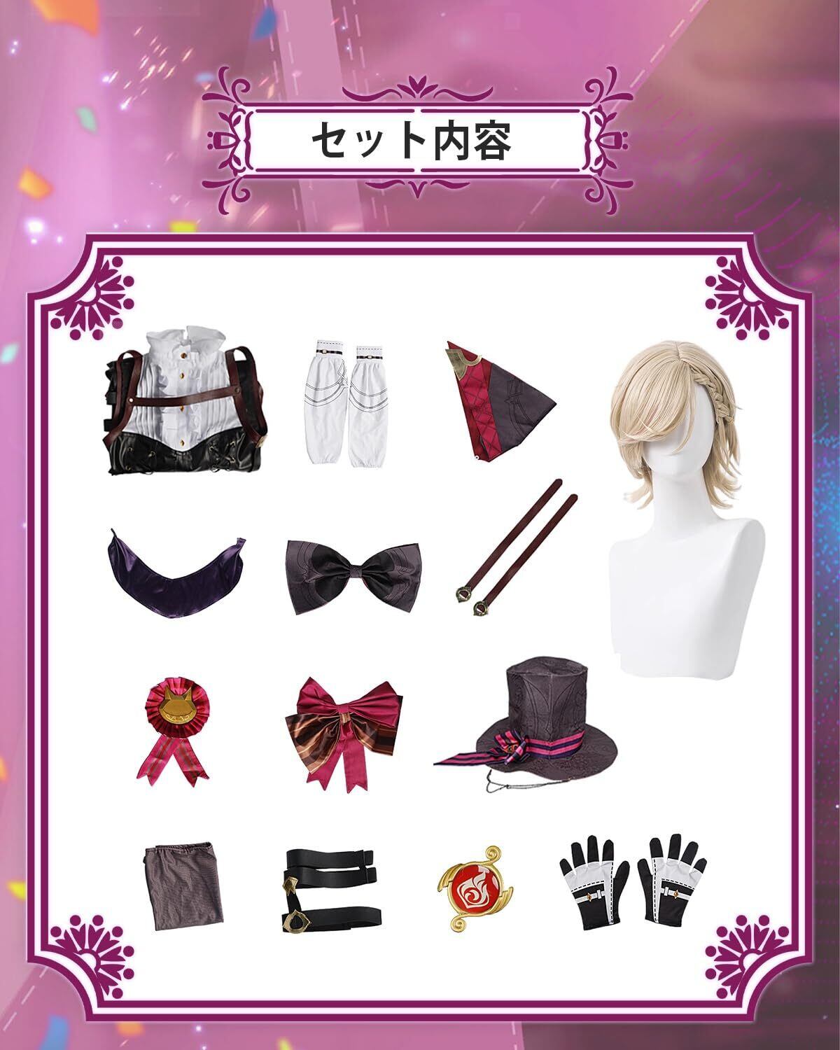 [神併良品] リネ コスプレ ウィッグ付き 魔術師 原神 コスプレ衣装 フルセット コスチューム 大人用 仮装 文化祭 Genshin Lyney cosplay (リネ ウィッグ付き,S)