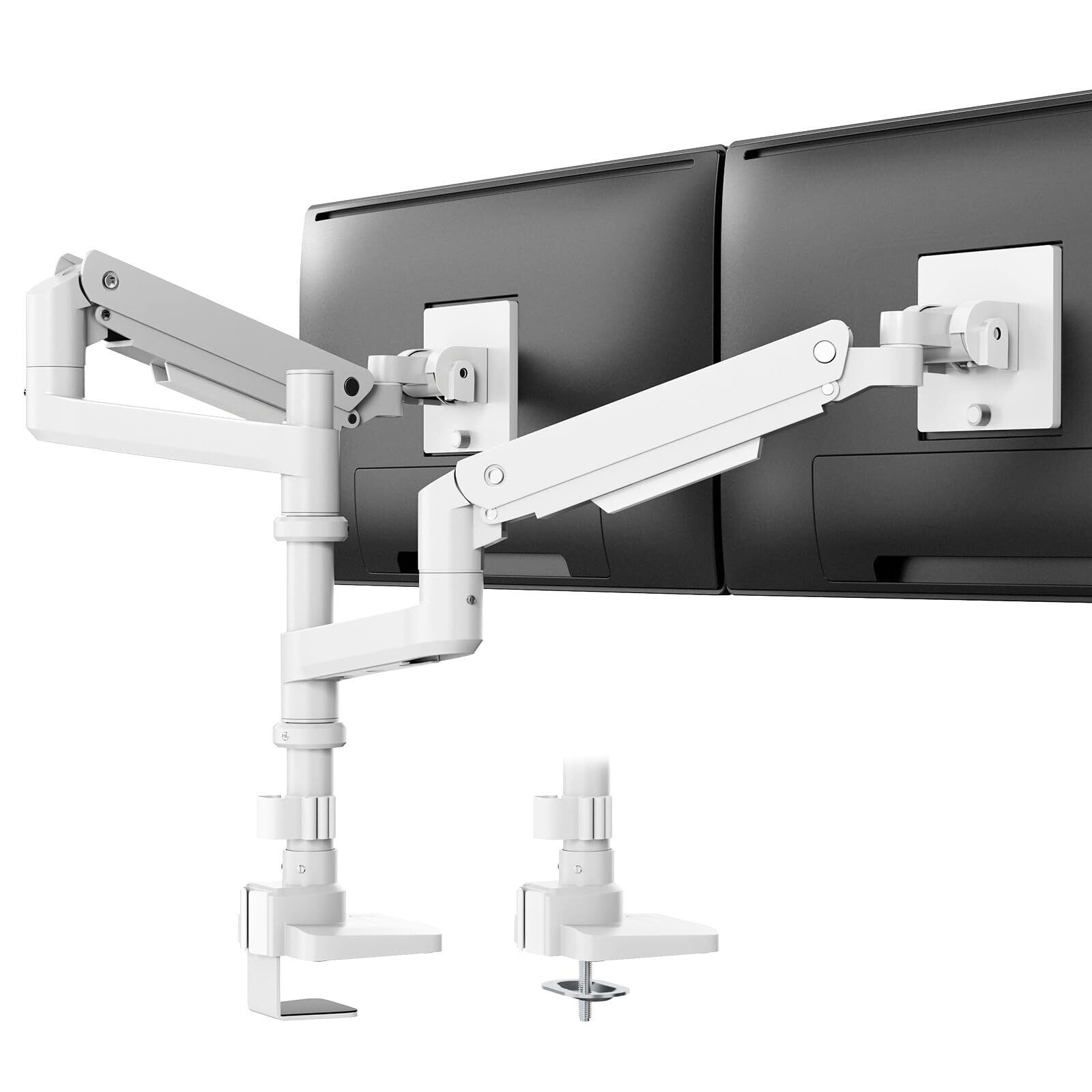 WORLDLIFT モニターアーム デュアル 上下2画面 ロングポール 17~49インチ対応 耐荷重2~20kg/1モニター ガススプリング アーム 縦/横並び グロメット式&クランプ式 VESA規格対応(白)