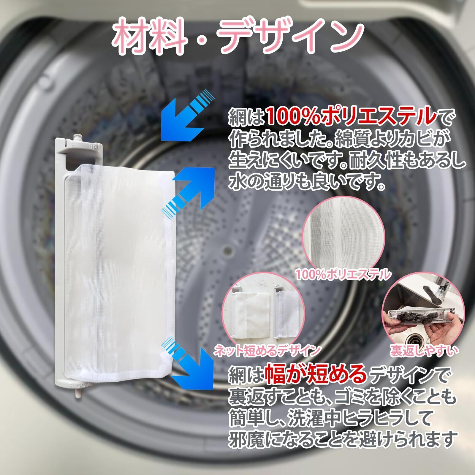 【 高品質材料·心を込めたデザイン】糸くずフィルターの網は100%ポリエステルで作られました。綿質よりカビが生えにくいです。耐久性もあるし水の通りも良いです。クズ取りネットの幅が短めるデザインで裏返すことも、ゴミを除くことも簡単し、洗濯中ヒラヒラして邪魔になることを避けられます。