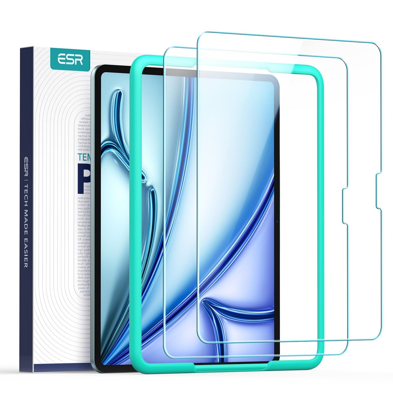 ESR 2枚入り iPad Air 11インチ フィルム M3/M2 (2025/2024 第7/6世代) 専用 ガイド枠付き ガラスフィルム スクリーン保護 9H 傷防止 気泡なし HD透明 指紋防止 Apple Pencil対応