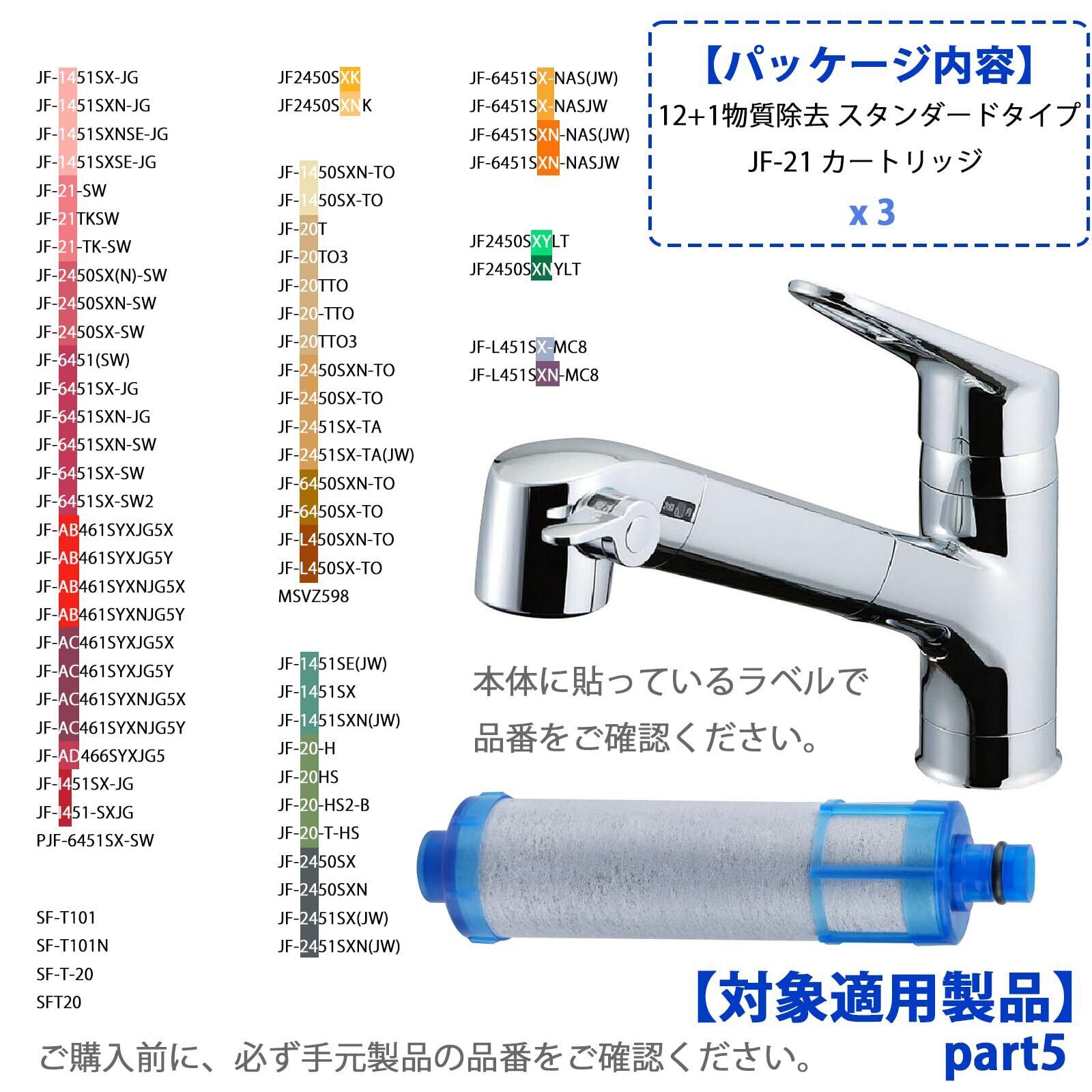 JF-21 カートリッジ JF-21-T 浄水器 JF-21-F 交換用浄水カートリッジ 12+1物質除去 JF-21-B3 浄水カートリッジ JF-21-S スタンダードタイプ RJF-865Y オールインワン浄水栓用 RJF-771 浄水栓カートリッジ RJF-771YNA 互換品 3個入り