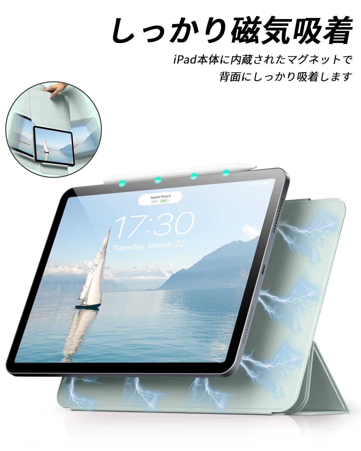 【磁気吸着】強力な磁石を搭載しており、瞬時にiPadに収着し、デバイスの前面と背面をしっかり守ります、側面のバックルはあなたのiPadをより安全に保ちます。従来のエッジを取り除くだけでなく、体を薄くて軽く保ちます。