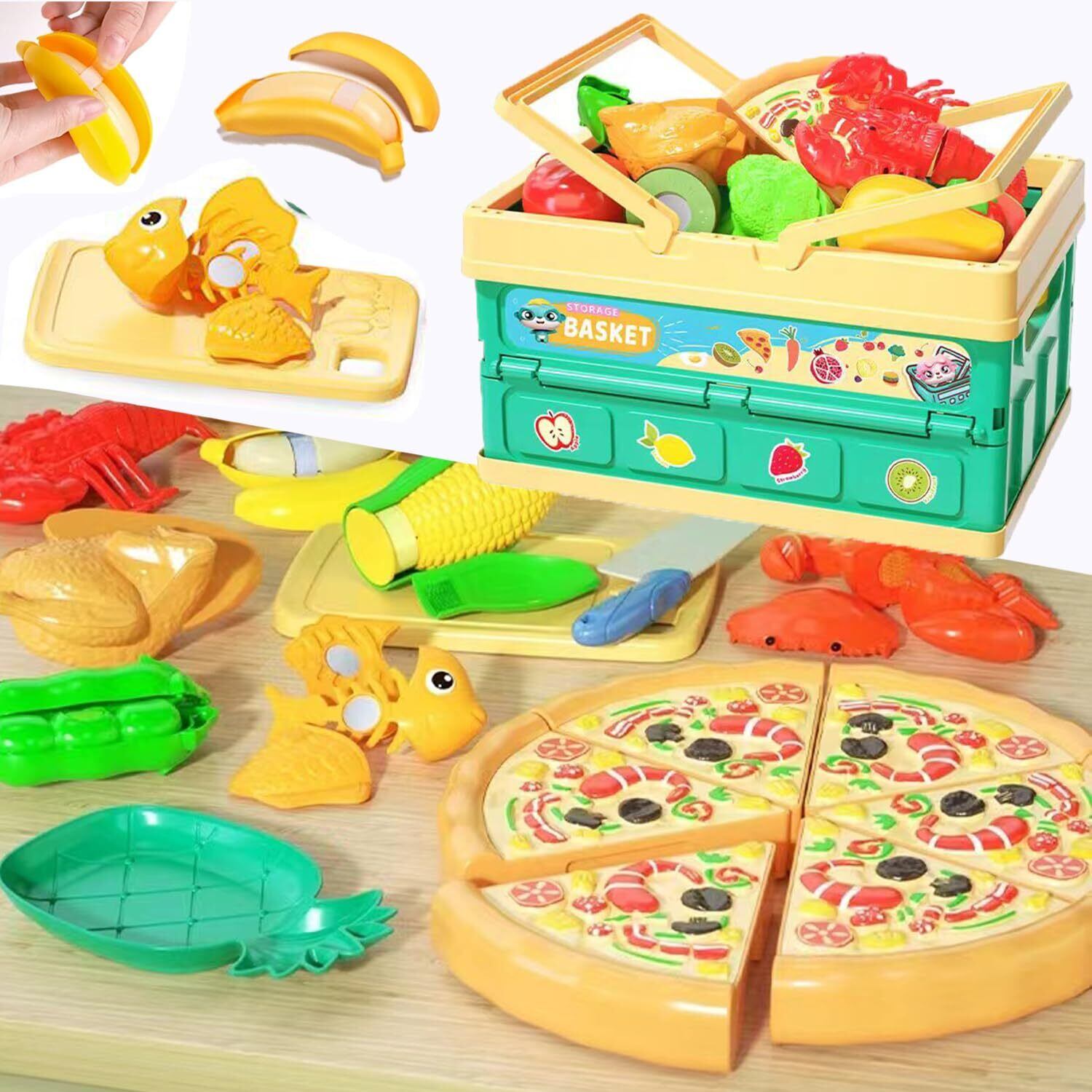 【保管と持ち運びが簡単 】当社の子供用ゲームフードセットには、高品質の収納バスケットが含まれています。 バスケットは頑丈で耐久性のある ABS 素材で作られており、整理や持ち運びが簡単な折りたたみ式のデザインになっています。魅力的な遊びセッションの後、すべての遊び道具が家に収まることをします。