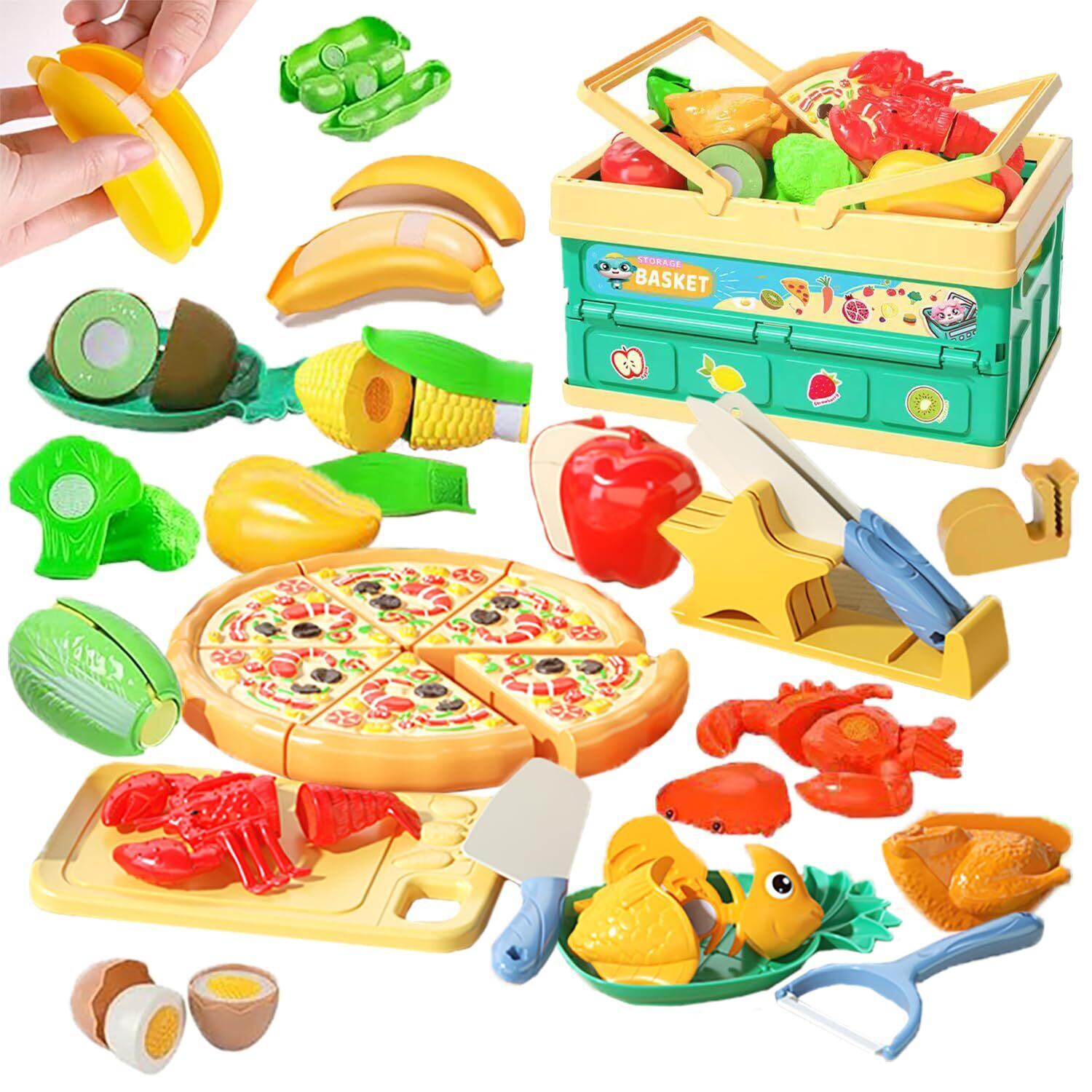 La Gacelaおままごとセット 55点セット 野菜 果物 食器 海鮮 収納かご キッチン おもちゃ ごっこ遊び 食べ物 贅沢食材 ごっこ遊び 親子遊び 誕生日プレゼント キッチントイ おもちゃ