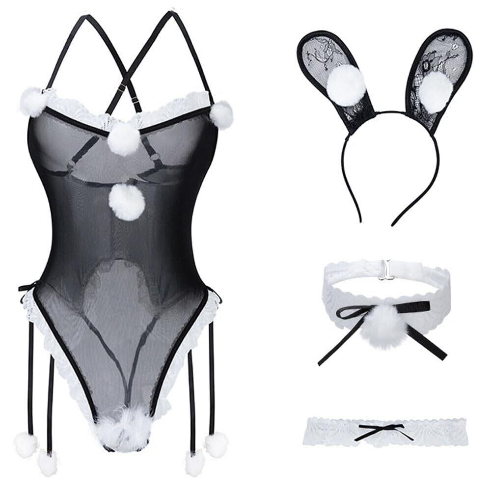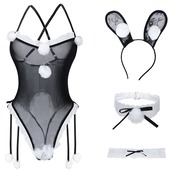 セット内容:うさ耳カチューシャ+ボディスーツ+ネックリング+レッグリング