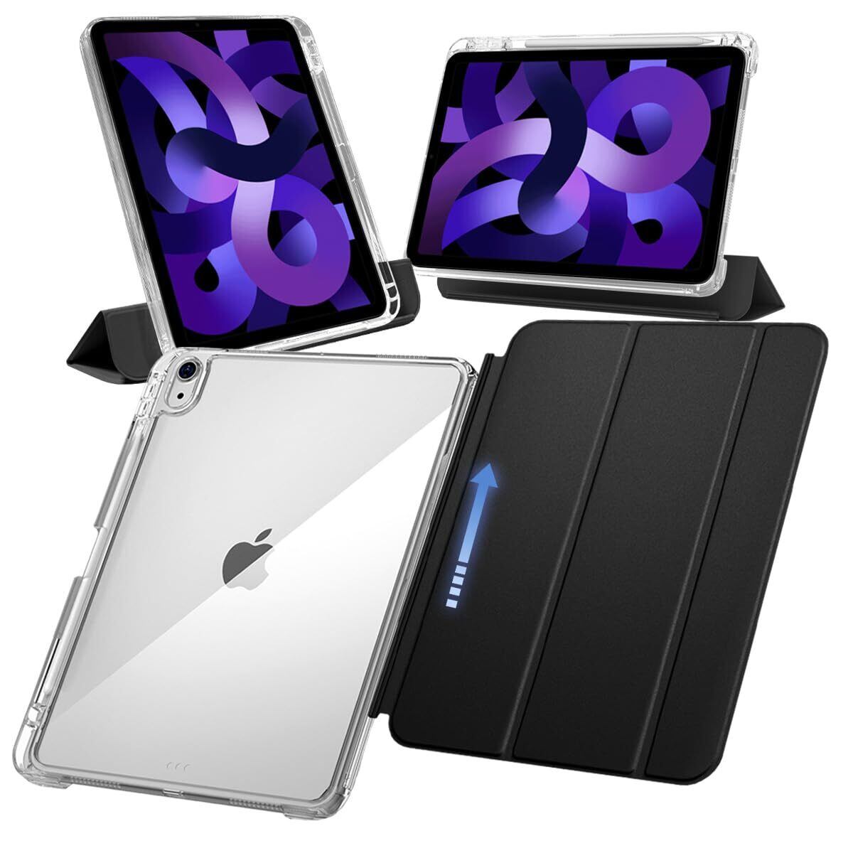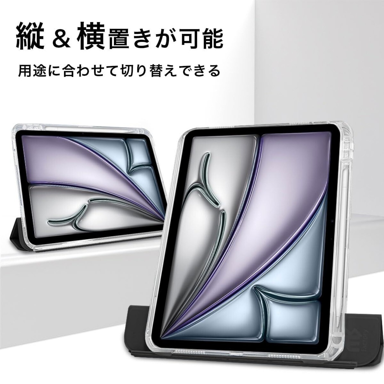 MS factory iPad Air 11インチ ケース M3 (2025) M2 (2024) 第5/4世代 用 ペン収納 取り外し可能 軽量 耐衝撃 カバー 縦置き/横置きスタンド アイパッドエアー 第5世代 第4世代 ソフトフレーム 背面透明 リッチブラック 黒 IPDA4-SLDPEN-BK