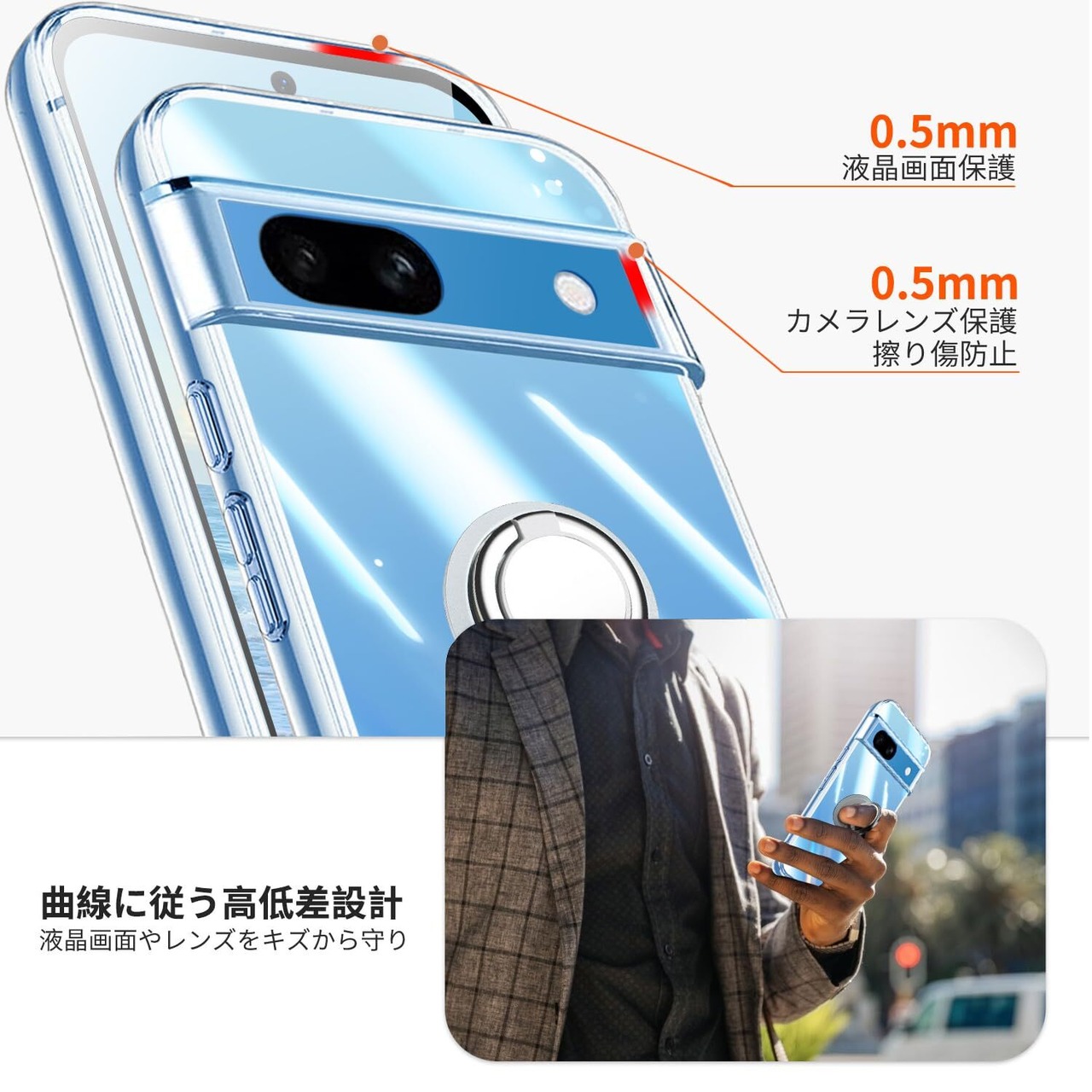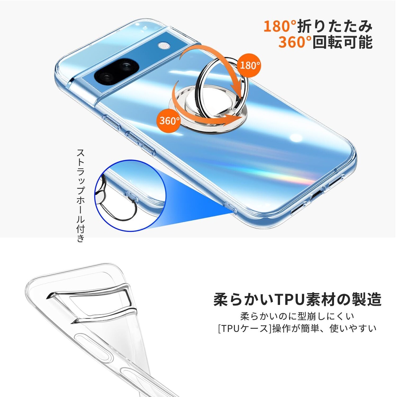 Google Pixel 8A ケース クリア リング付き TPU ピクセル8a カバー 専用 黄変防止 耐衝撃 薄型 ケース 車載ホルダー対応 ストラップホール付き 滑り止め 落下防止