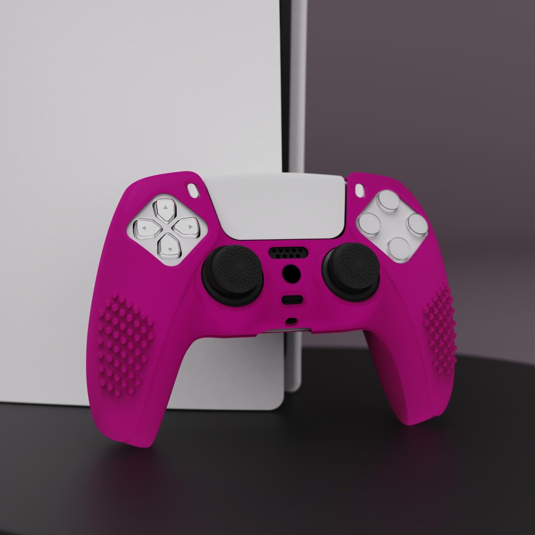 eXtremeRate PlayVital ps5コントローラーに対応用保護カバー、滑り止めシリコンスキンケースカバー、ps5コントローラー対応用人間工学に基づいたソフトラバー、保護ケース親指スティックキャップ付き【3Dスタッズエディション-クリムソン】