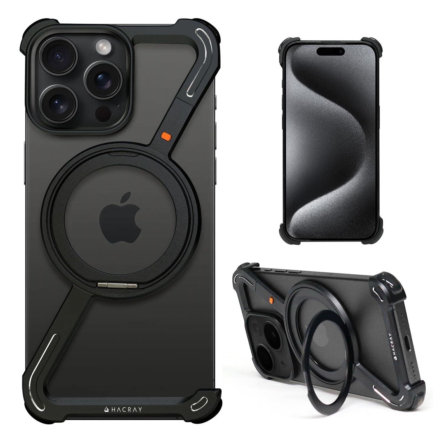 Hacray 15 Pro Max 用 バンパーケース 360°回転 Magsafeリングスタンド [ アルミニウム素材 衝撃防止 高耐久性 MagSafe対応 落下防止 スマホグリップ ] HR26883i15PM ブラック【国内正規品】