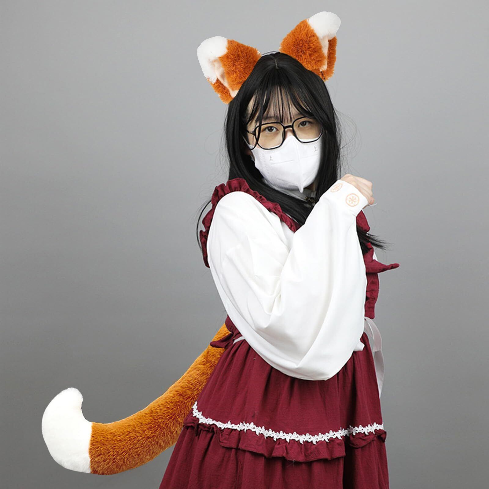 【柔らかい材質】キツネ耳としっぽは高品質のフェイクファーを採用し、柔らかくて快適です。狐の形のようにデザインされ、リアルでかわいいです