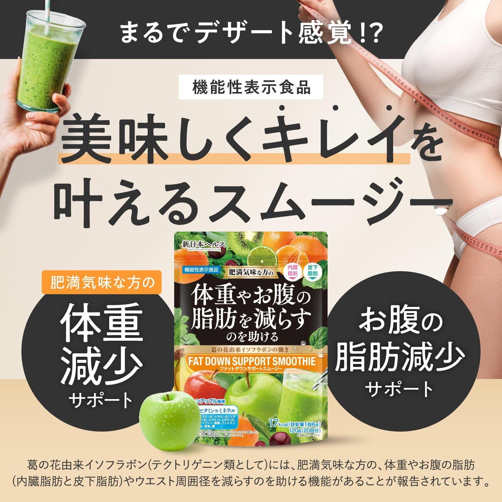 ファットダウンサポートスムージー 体重やお腹の脂肪を減らす ダイエット 置き換え グリーンアップル風味 国内GMP製造 ビタミン ミネラル 酵母 スーパーフード シェイク 新日本ヘルス 食品 粉末 1食おきかえ