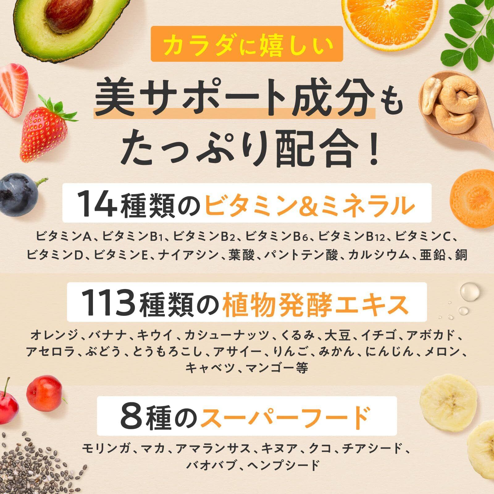 【美サポート成分もたっぷり配合!】14種類のビタミン&ミネラル、113種類の植物発酵エキス、8種のスーパーフードを贅沢配合。