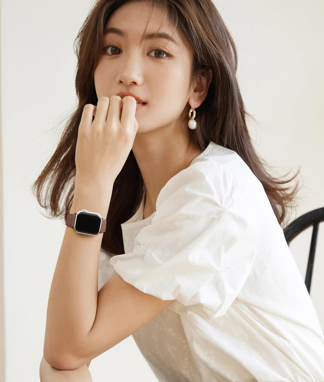 対応機種:(130mm-190mm)の手首にフィットします。iWatch Series 10/9/8/7/6/5/4/3/2/1/SE/SE2に対応しています。バンドの最小幅は16mmで、小さい穴が11つ開いているため、女性の方々にぴったりのサイズ感があり、大人女性に人気のスリム仕様です。エレガントなデザインで、まるでアクセサリーのように手首を細く見せ、フェミニンな外観を演出します。