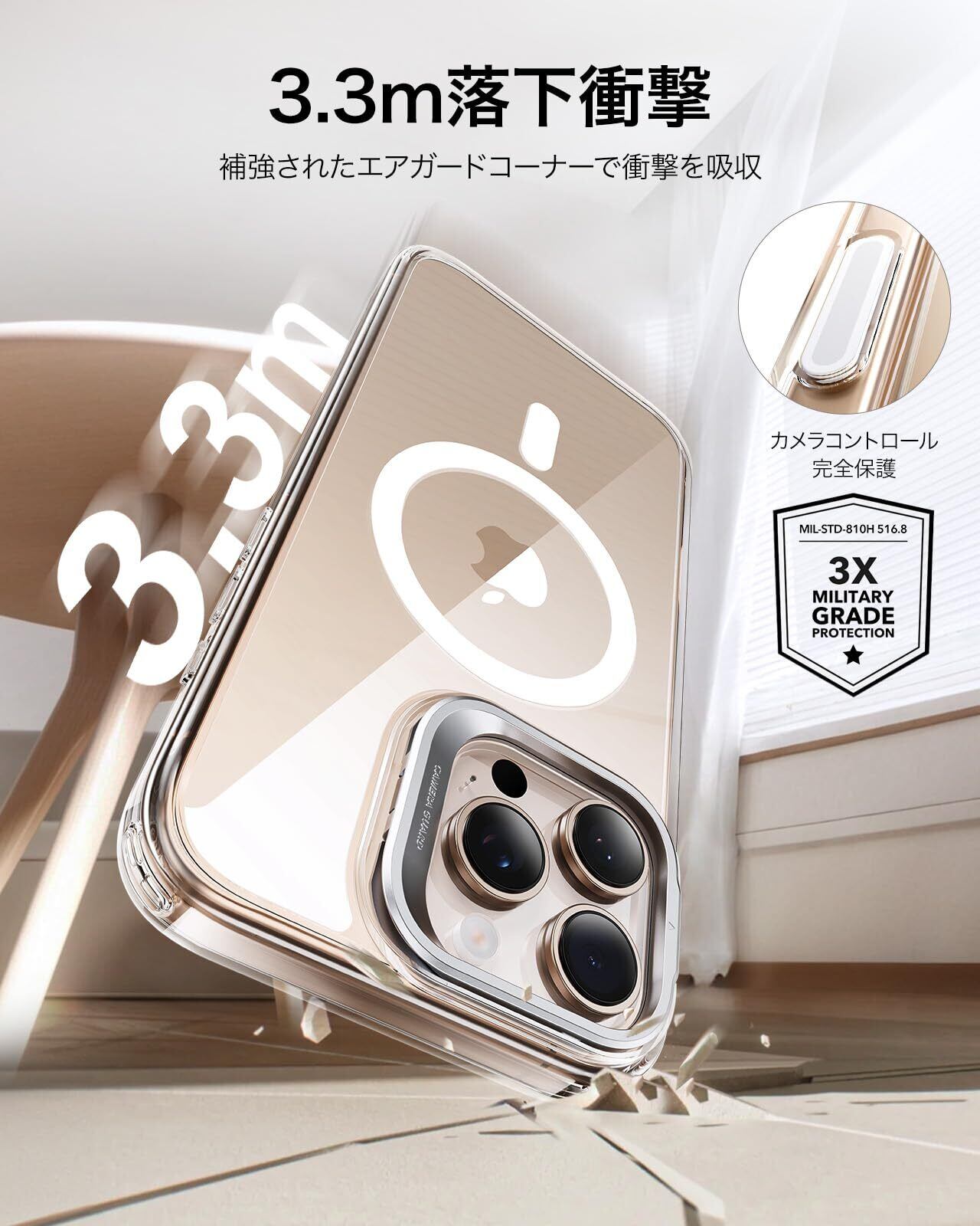 【デザイン受賞シリーズ!】ESR iPhone 16 Pro ケース カメラコントロール Magsafe対応 カメラコントロール 米軍MIL規格の保護 耐黄変 耐衝撃 隠れスタンド いPhone16Pro ケース スマホケース 傷防止背面 iPhone16 Pro ケース対応 アイフォン 16 プロ対応 いphone16 Pro ケース 対応 Classicシリーズ クリア