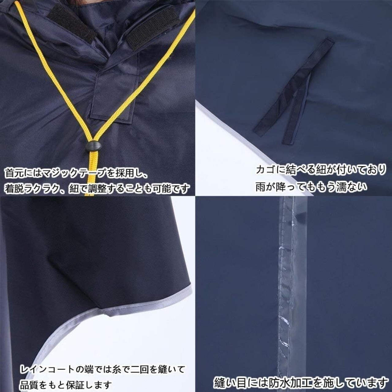 [caffmo] 男女兼用自転車バイク 長いポンチョ レインコート サイクル レインポンチョ 厚手生地 防水 通勤 通学 大きい二重ツバ 収納袋付き フリーサイズ4XL(145 * 120 * 140 * 15cm)