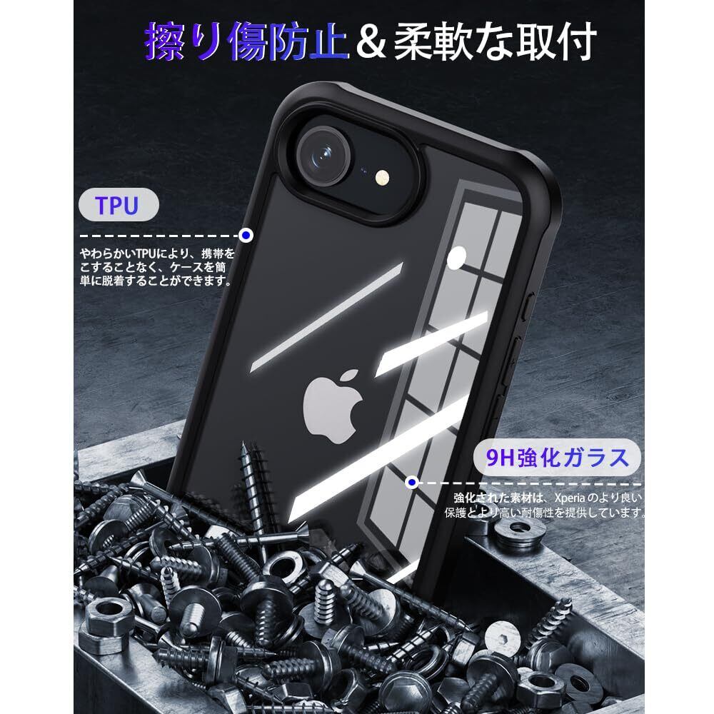 【両面!全面保護!】McDuLL iPhone 16e 用 ケース 6.1 インチ SE4 第四世代 360度保護 9H強化ガラス+PC素材+TPUバンパー 耐衝撃性 擦り傷防止 薄型 Qi充電対応 軽量 落下防止 指紋防止 アイフォン16e 用 カバー (ブラック)