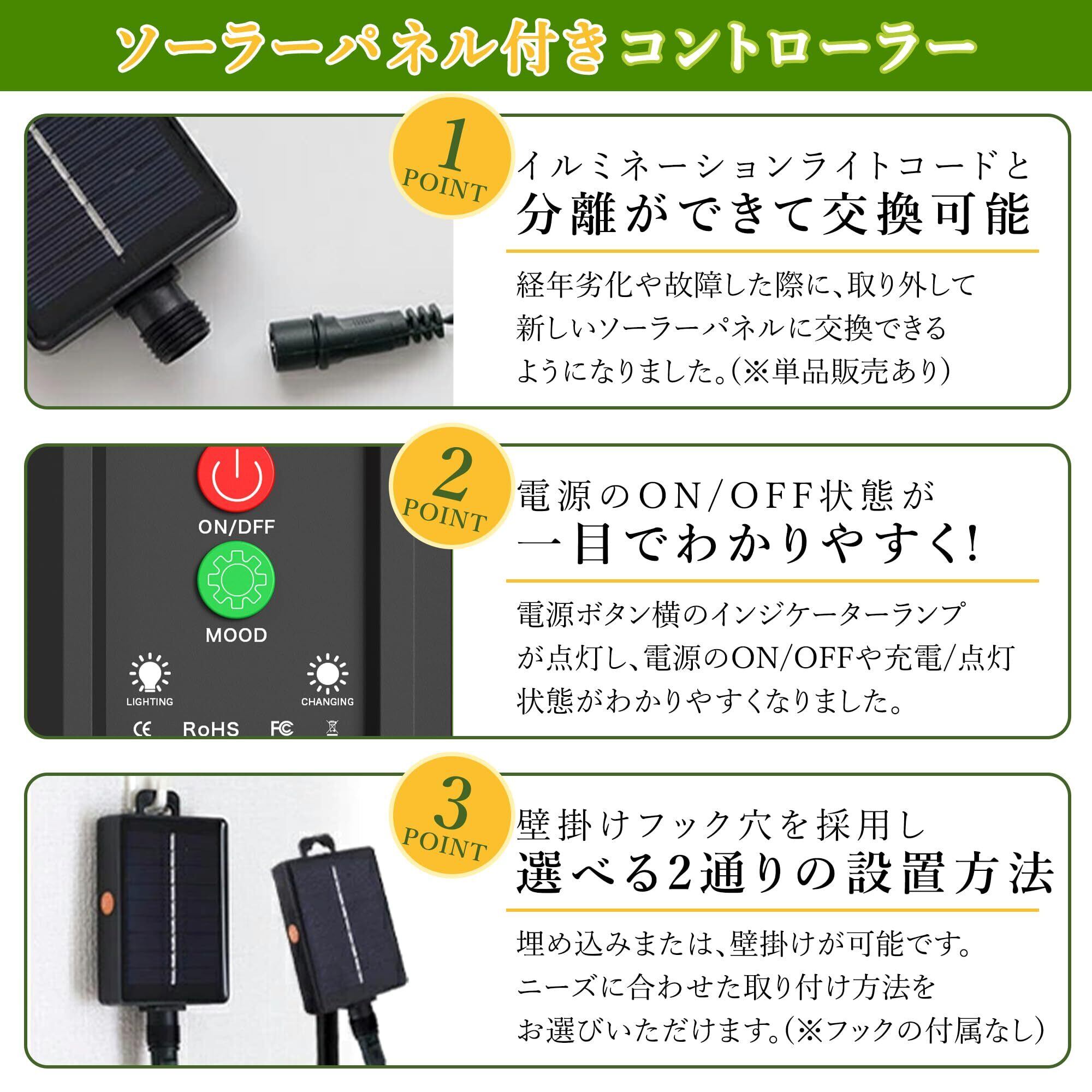 【電源不要!エコでコスパ最高!】 玄関先やガーデンを、美しい光でおしゃれにデコレーションする**「ソーラーイルミネーションライト」**。屋外用LEDイルミネーションとして、昼間にソーラーパネルが太陽光を電力に変え、夜間に自動で点灯します。配線不要で設置が簡単!直射日光の当たる場所にソーラーパネルを設置するだけで、夜には幻想的なイルミネーションが楽しめます。防水LEDライトなので、雨の日も安心。電気代がかからず、環境にも優しいので、家庭でも商業施設でも大活躍です。
